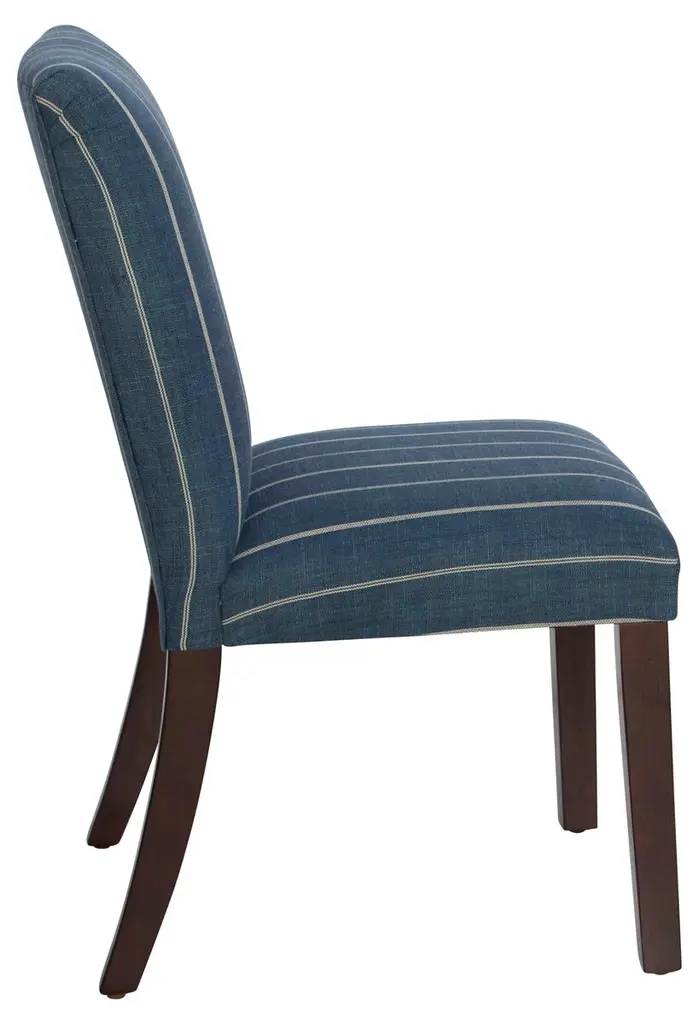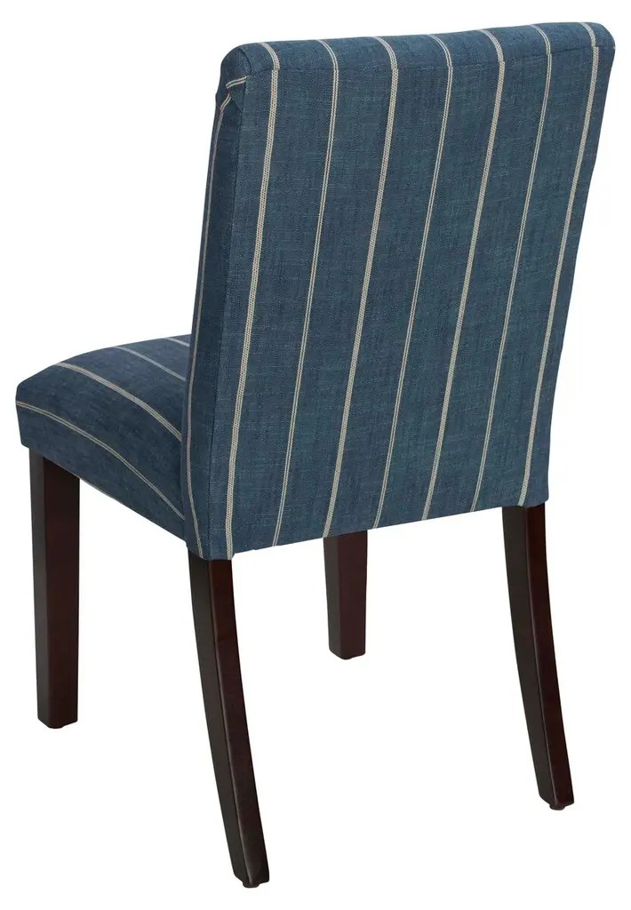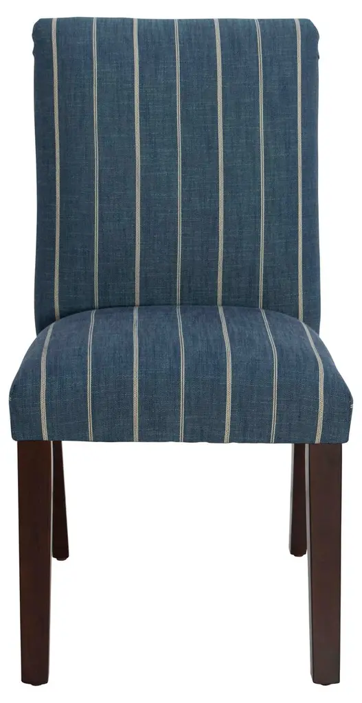 Pairing a clean-lined silhouette and striped linen-blend fabric, this amply padded side chair lends your home a tailored elegance. Rubberwood legs coordinate beautifully. Handcrafted in the USA.