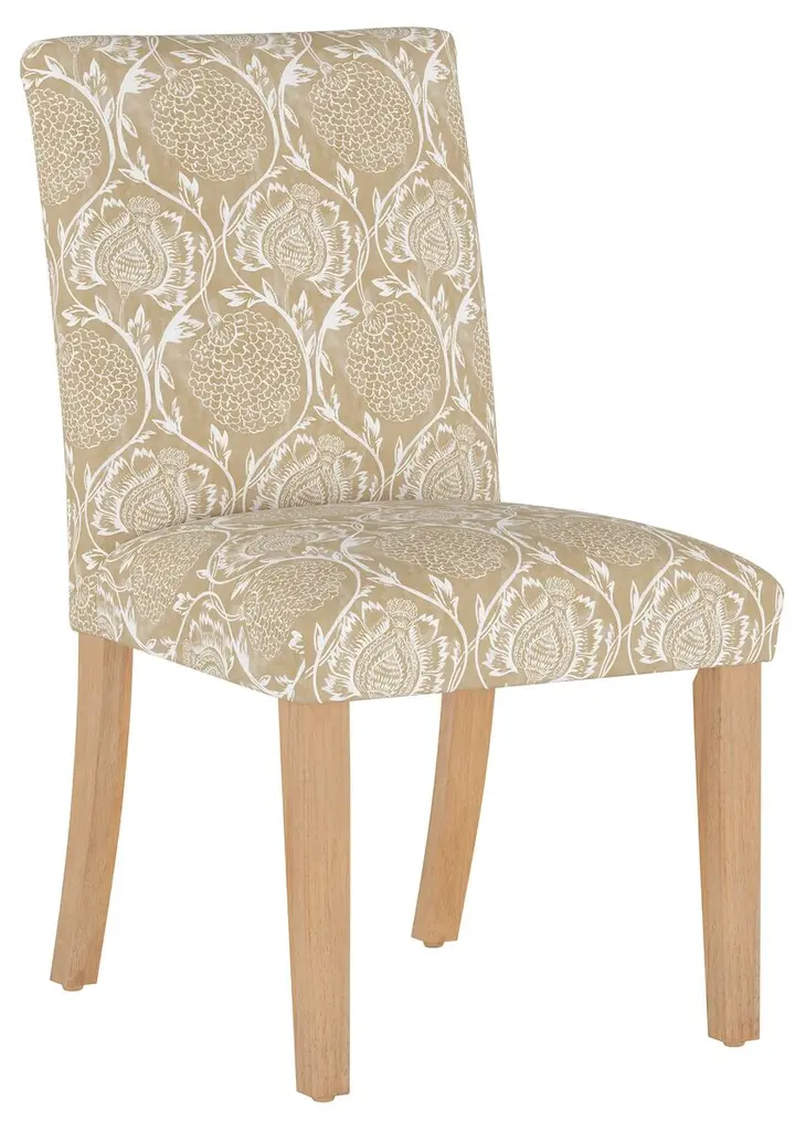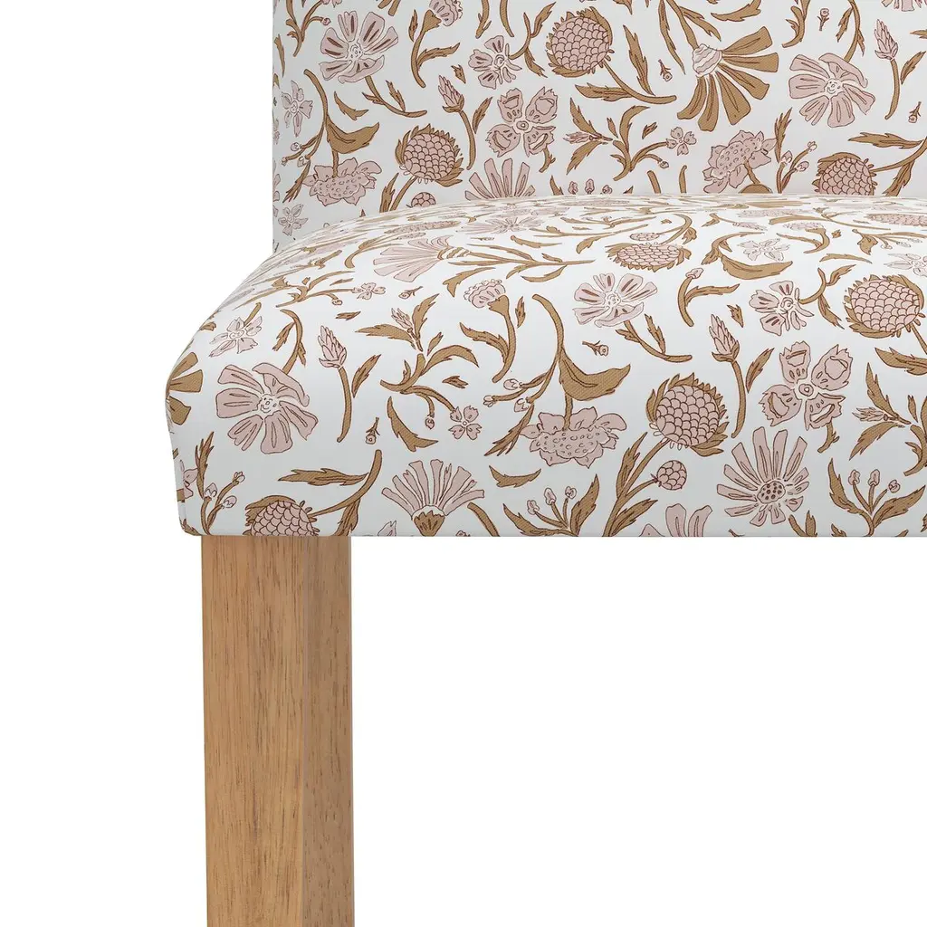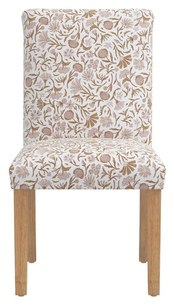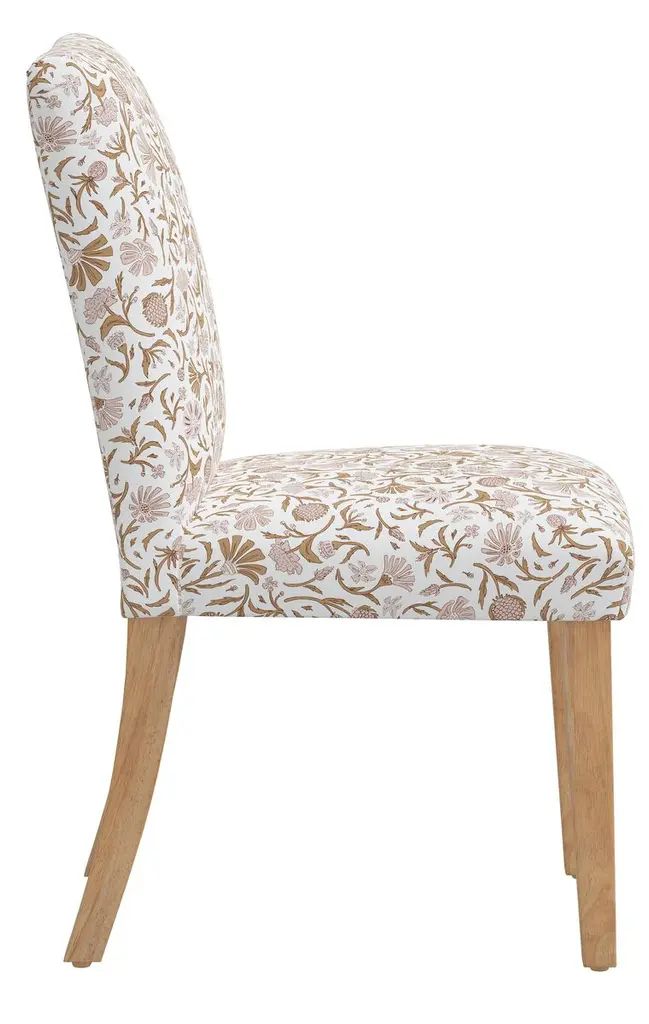 Exclusive to One Kings Lane: The floral motif of the upholstery, inspired by classic block prints, adds timeless allure to this clean-lined side chair. Ample padding of both the seat and the back makes it as comfortable as it is chic.
