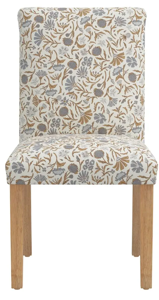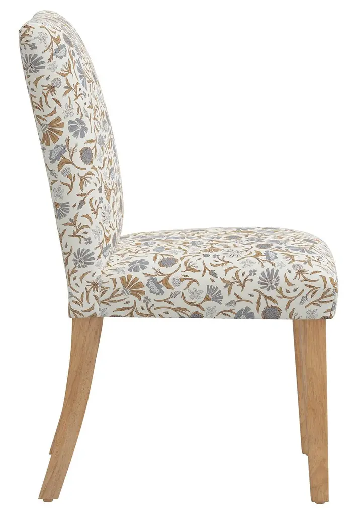 Exclusive to One Kings Lane: The floral motif of the upholstery, inspired by classic block prints, adds timeless allure to this clean-lined side chair. Ample padding of both the seat and the back makes it as comfortable as it is chic.