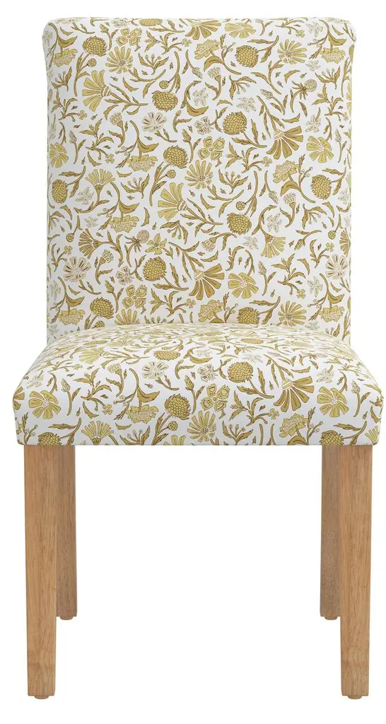 Exclusive to One Kings Lane: The floral motif of the upholstery, inspired by classic block prints, adds timeless allure to this clean-lined side chair. Ample padding of both the seat and the back makes it as comfortable as it is chic.