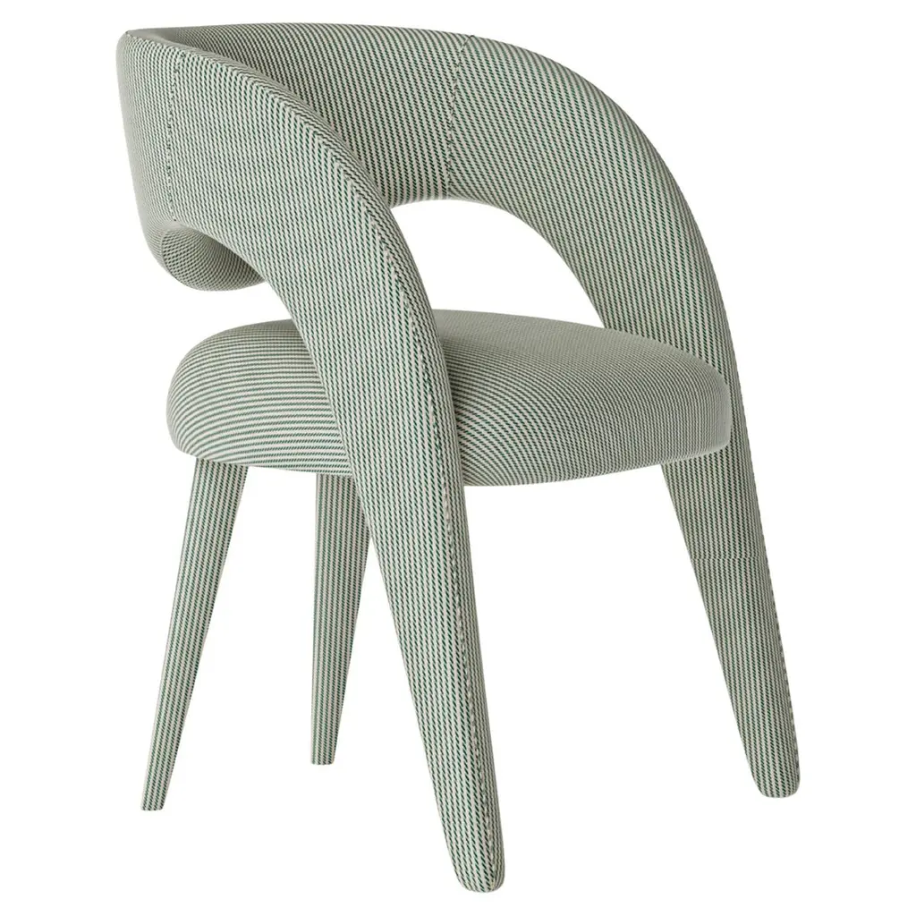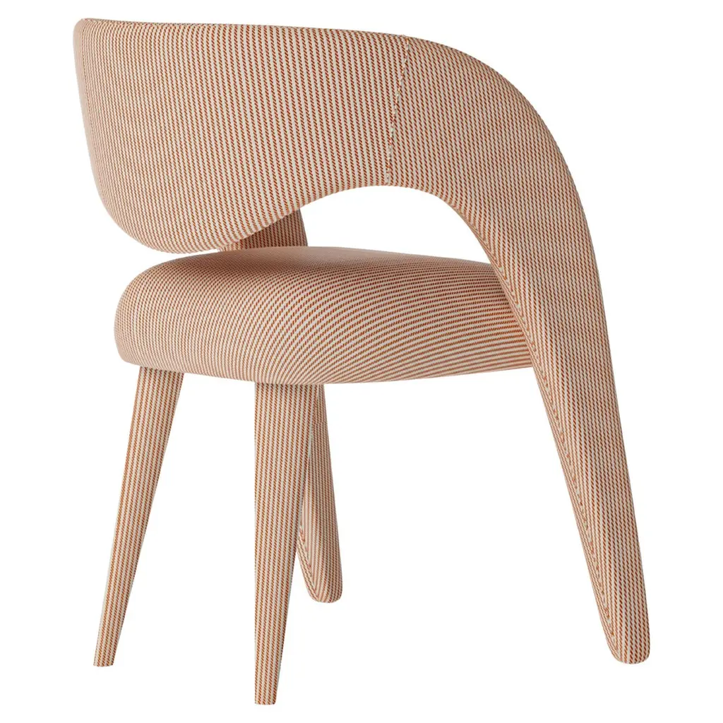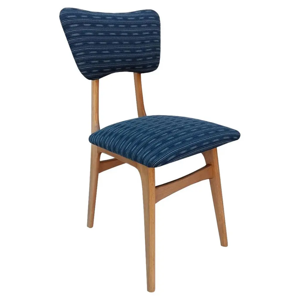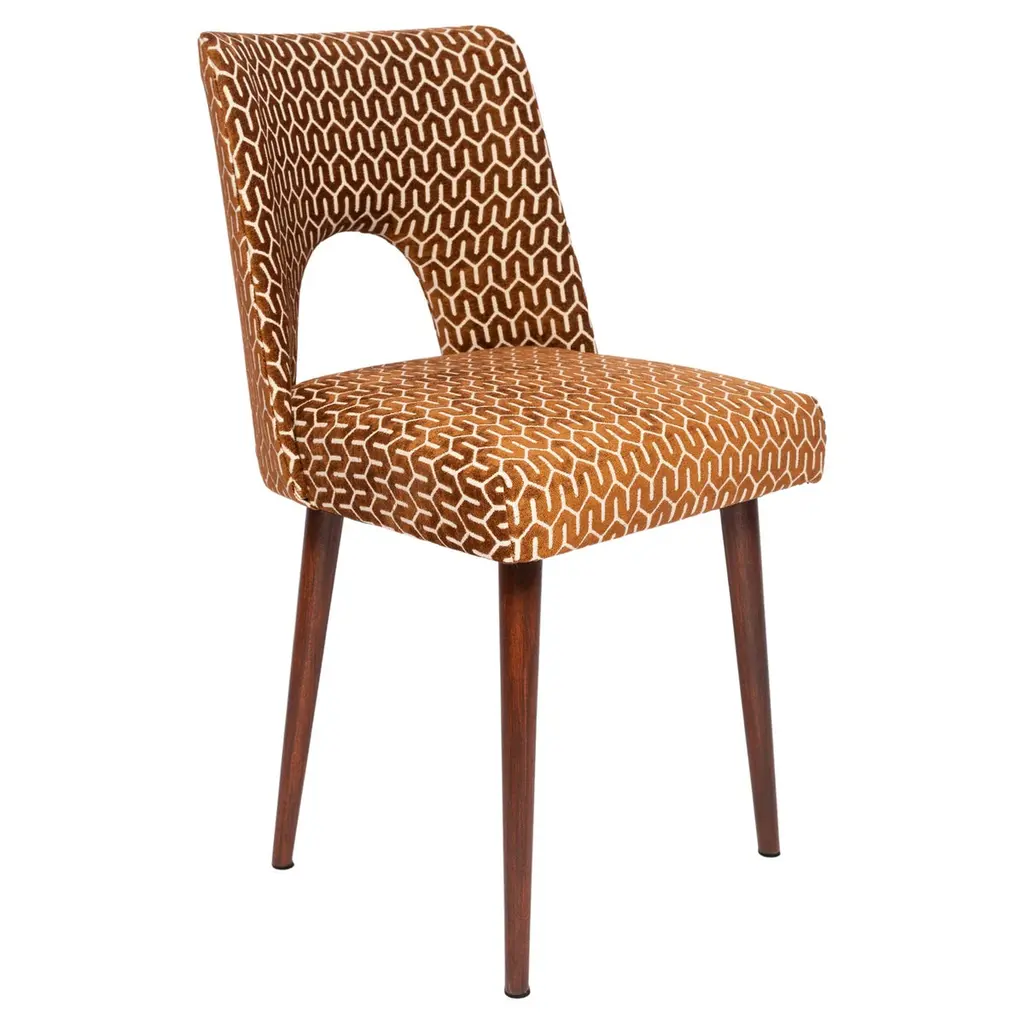 Springy, very comfortable and stabile dining seats.They are contemporary chairs inspired of 1960s style. They can be used as armchairs and dining chairs. Chair was designed by Vintola Studio, a Polish brand created by Ola Szewczul, designer of vintage interior architecture and photographer.Designed in 2023, produced from 2024 at the Vintola Studio Factory in Poland. Well crafted hand made product.The whole armchair is covered with high-quality fabric. Very beautiful and comfortable item! Composition: 65% Polyester, 35% CottonDouble Rubs: Exceeds 15,000 Double Rubs (Wyzenbeek Method)All options of fabrics and wood colors are possible to prepare. Change of dimensions are also possible.Please ask for more informations.