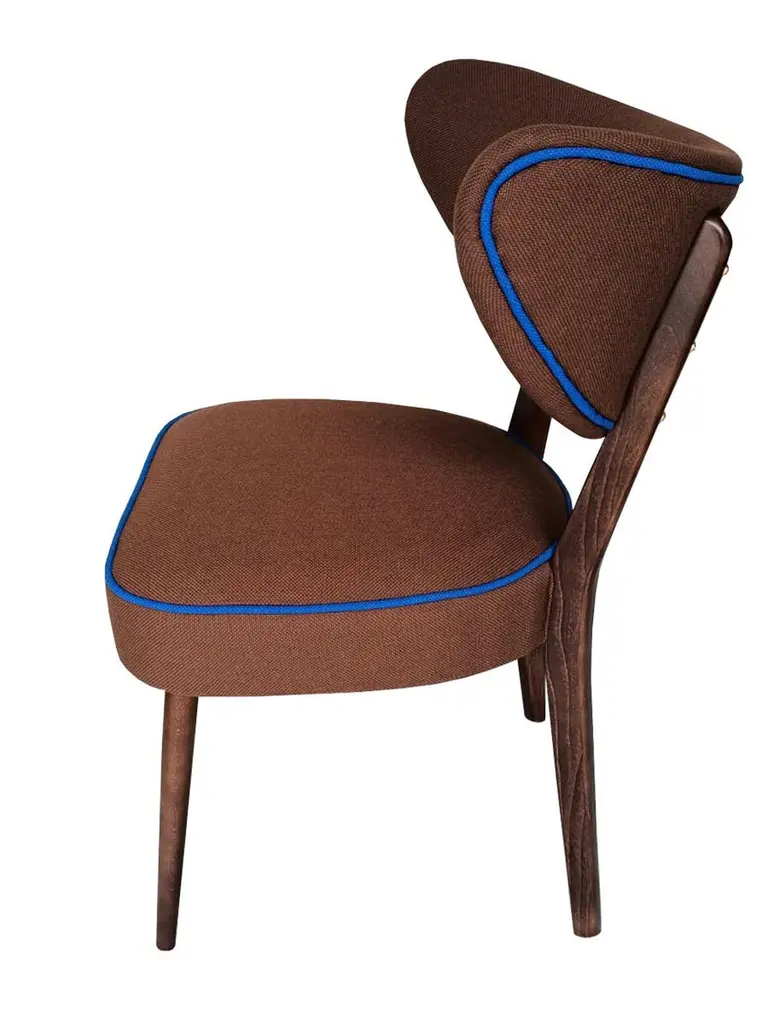 Shell Dining Chair, Brown Fire Retardant Fabric, By Vintola Studio, Europe
