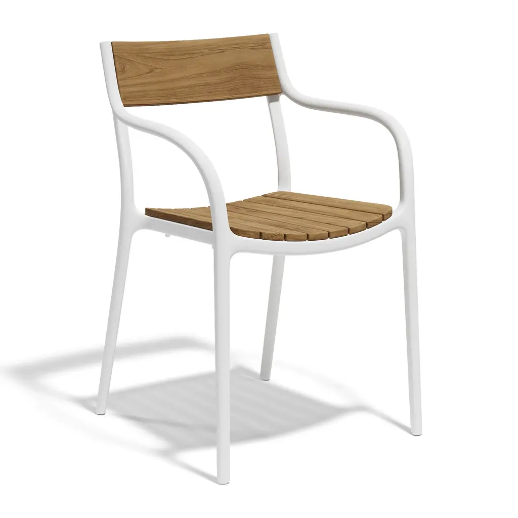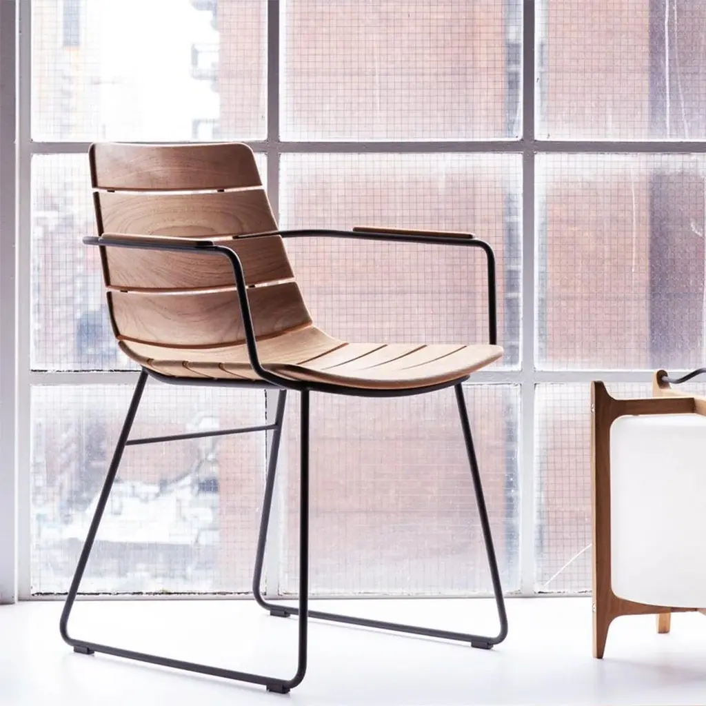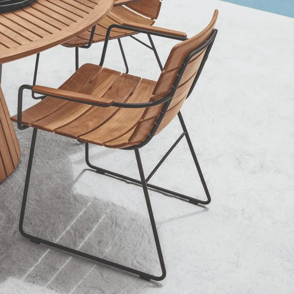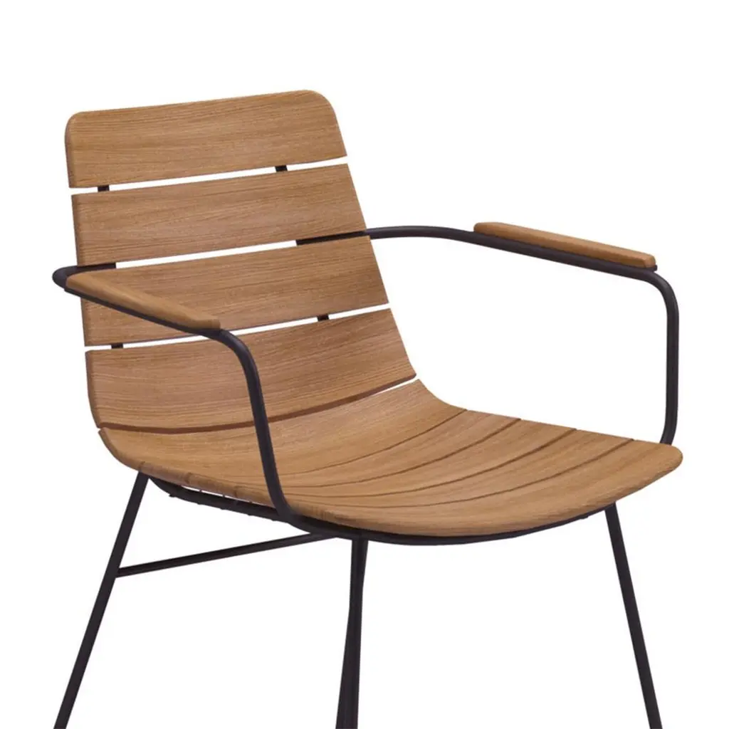 Dining chair shelton outdoor teak with stainless steel powder coated structure in black finish. With solid natural teak seat, backrest and armrests.