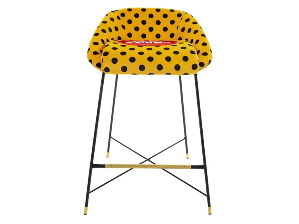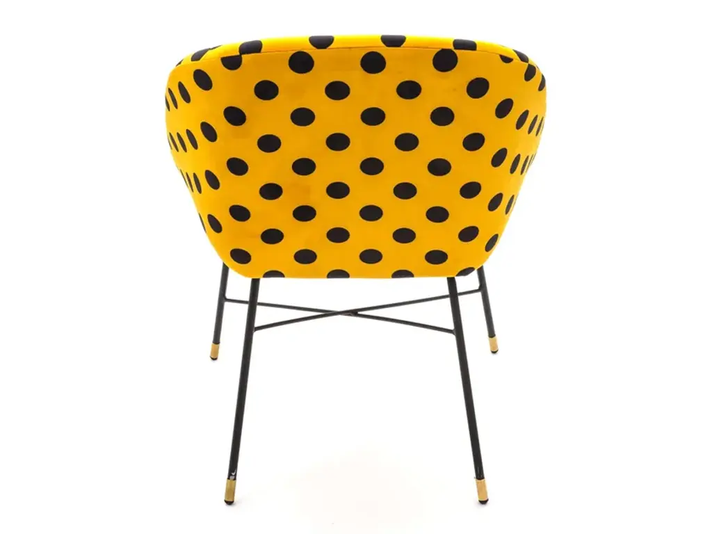Shit is a fabric chair with armrests.Mixing and matching the wildest graphics designed by TOILETPAPER it's possible to get the most iconic dining room of all.Material: fabrics in polyester, frame in wood with polyurethane padding, metalWeight: 9.7 kg