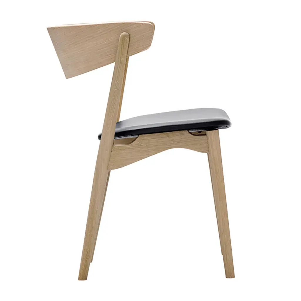 The ageless dining chair designed by Helge Sibast in 1953 has a unique character and a bold design. As an accomplished cabinetmaker as well as furniture architect, Helge Sibast not only designed but personally crafted his original furniture, which often challenged traditional ways of working with wood. The characteristic moulded backrest is a defining element that not only lends the chair its bold personality but also ensures outstanding seating comfort. The gently tapered back legs give the design a light and elegant appearance. Likewise, the seat construction lifts the seat free of the legs, contributing to the clean and simple expression. An original dining chair of enduring beauty and quality.