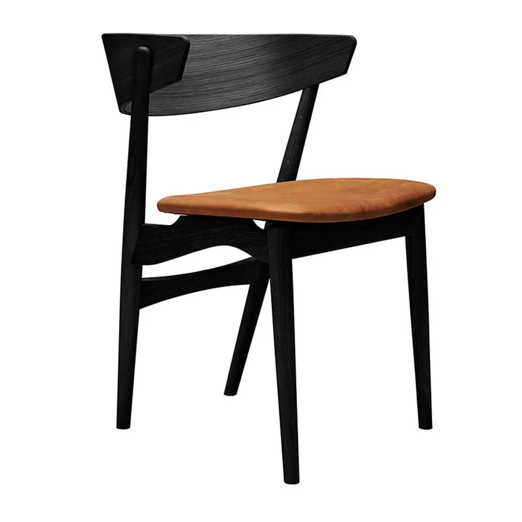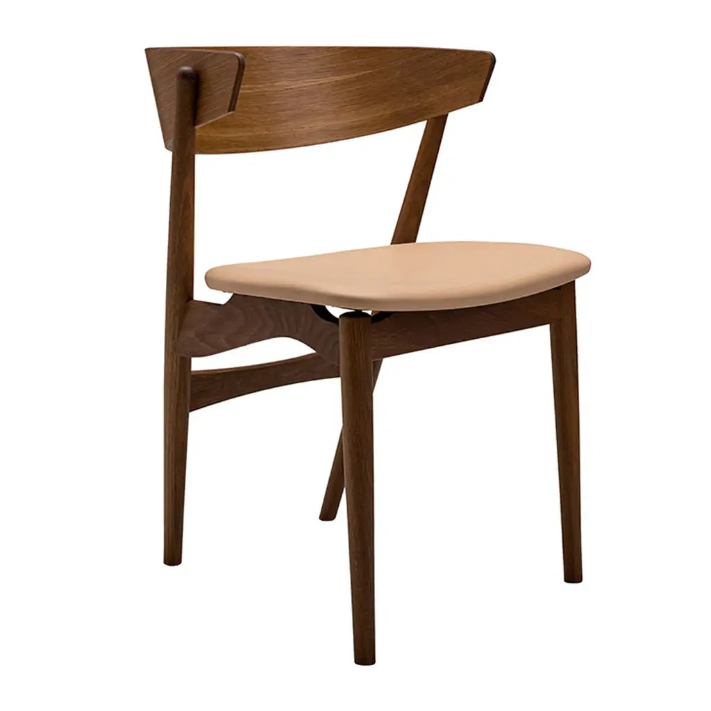 The ageless dining chair designed by Helge Sibast in 1953 has a unique character and a bold design. As an accomplished cabinetmaker as well as furniture architect, Helge Sibast not only designed but personally crafted his original furniture, which often challenged traditional ways of working with wood. The characteristic moulded backrest is a defining element that not only lends the chair its bold personality but also ensures outstanding seating comfort. The gently tapered back legs give the design a light and elegant appearance. Likewise, the seat construction lifts the seat free of the legs, contributing to the clean and simple expression. An original dining chair of enduring beauty and quality.