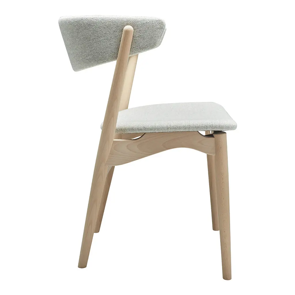 The ageless dining chair designed by Helge Sibast in 1953 has a unique character and a bold design. As an accomplished cabinetmaker as well as furniture architect, Helge Sibast not only designed but personally crafted his original furniture, which often challenged traditional ways of working with wood. The characteristic moulded backrest is a defining element that not only lends the chair its bold personality but also ensures outstanding seating comfort. The gently tapered back legs give the design a light and elegant appearance. Likewise, the seat construction lifts the seat free of the legs, contributing to the clean and simple expression. An original dining chair of enduring beauty and quality.
