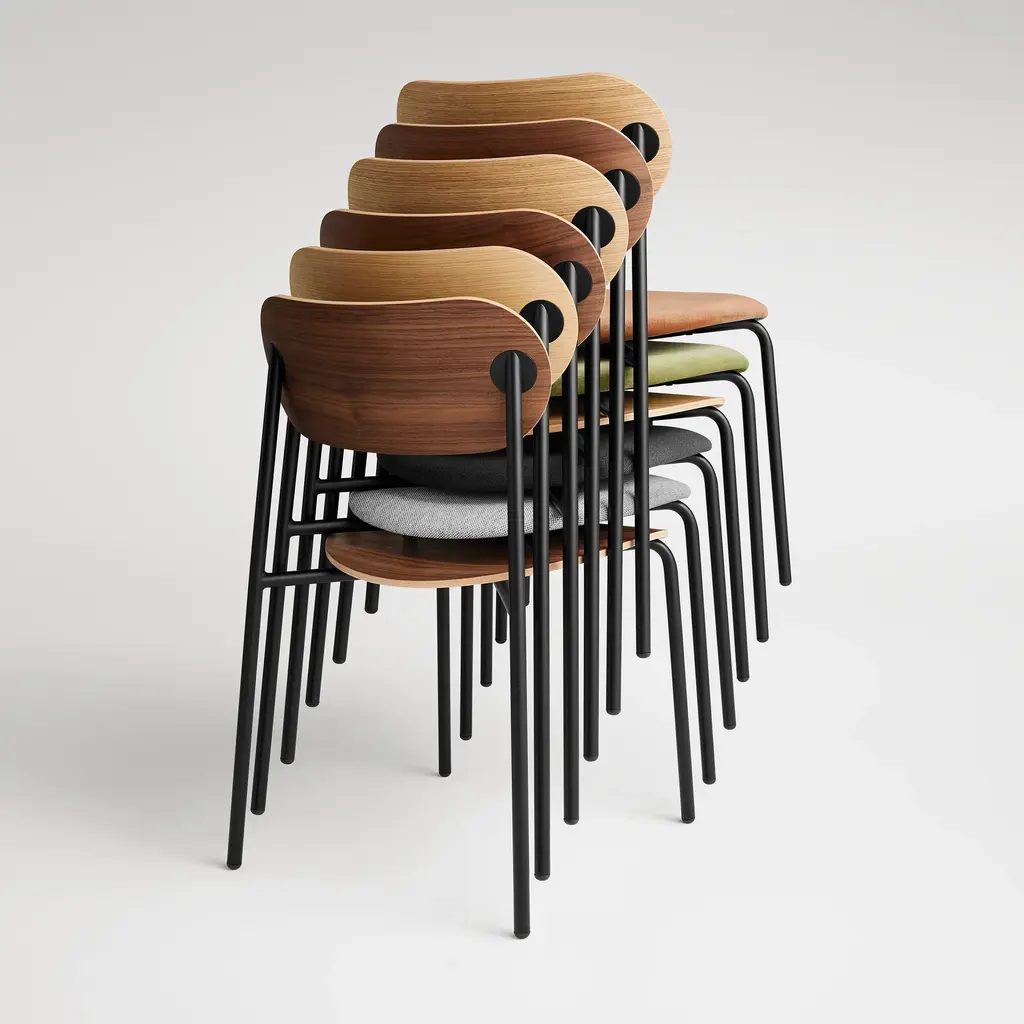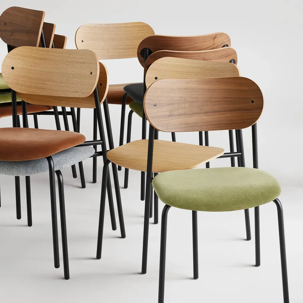 Paying homage to the traditional school chair, the SideBySide Dining Chair from Blu Dot brings an updated look to a familiar silhouette. Stackable and adorable, this simple yet alluring seat offers a combination of traditional simplicity and modern materials and color. Showcasing a smooth curvature throughout the seat and back, this dining chair is ready to cradle you in comfort as you enjoy hours of conversation over a meal with friends and family. Available in an extensive range of wood and upholstery combinations to satisfy even the pickiest eaters. Features