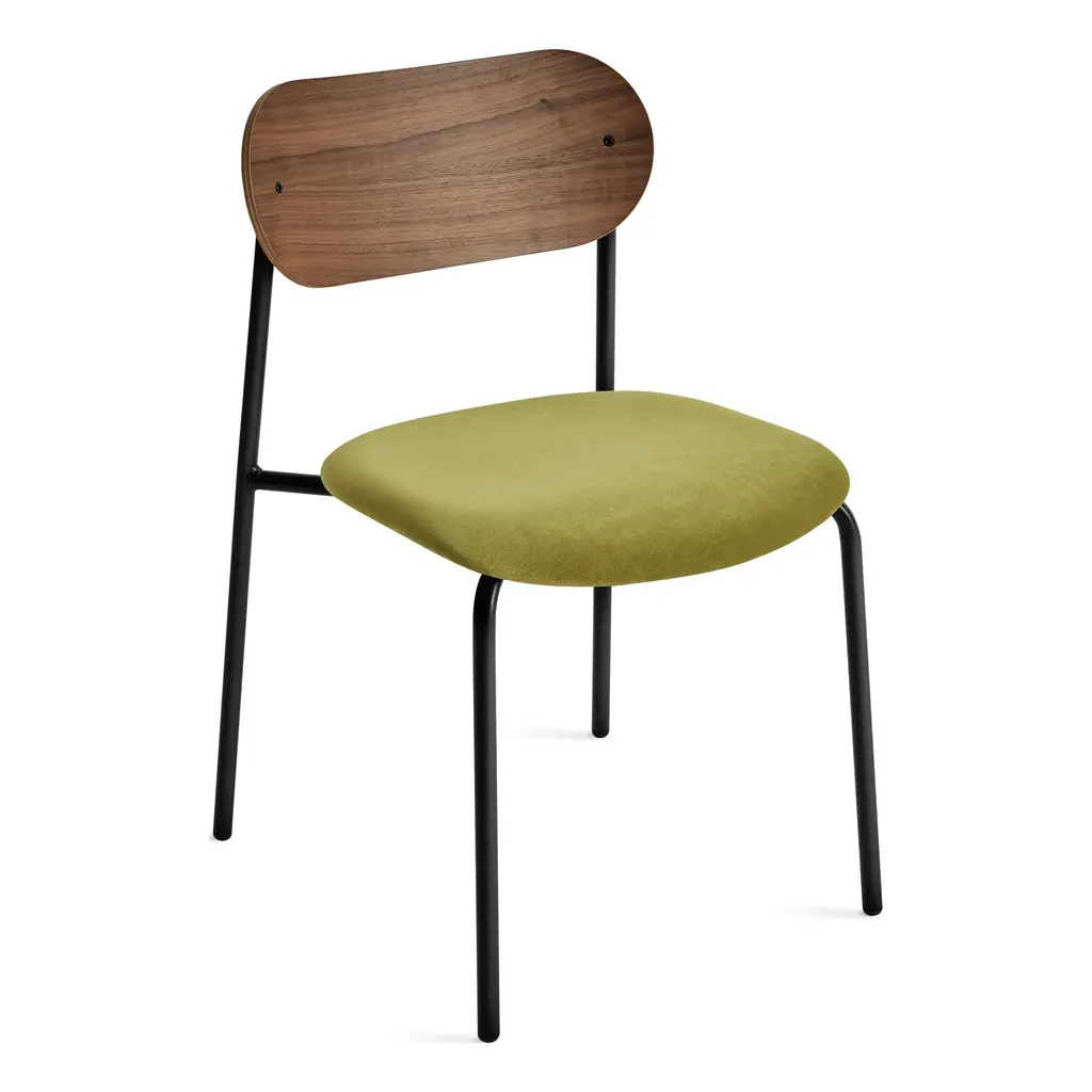 Paying homage to the traditional school chair, the SideBySide Dining Chair from Blu Dot brings an updated look to a familiar silhouette. Stackable and adorable, this simple yet alluring seat offers a combination of traditional simplicity and modern materials and color. Showcasing a smooth curvature throughout the seat and back, this dining chair is ready to cradle you in comfort as you enjoy hours of conversation over a meal with friends and family. Available in an extensive range of wood and upholstery combinations to satisfy even the pickiest eaters. Features