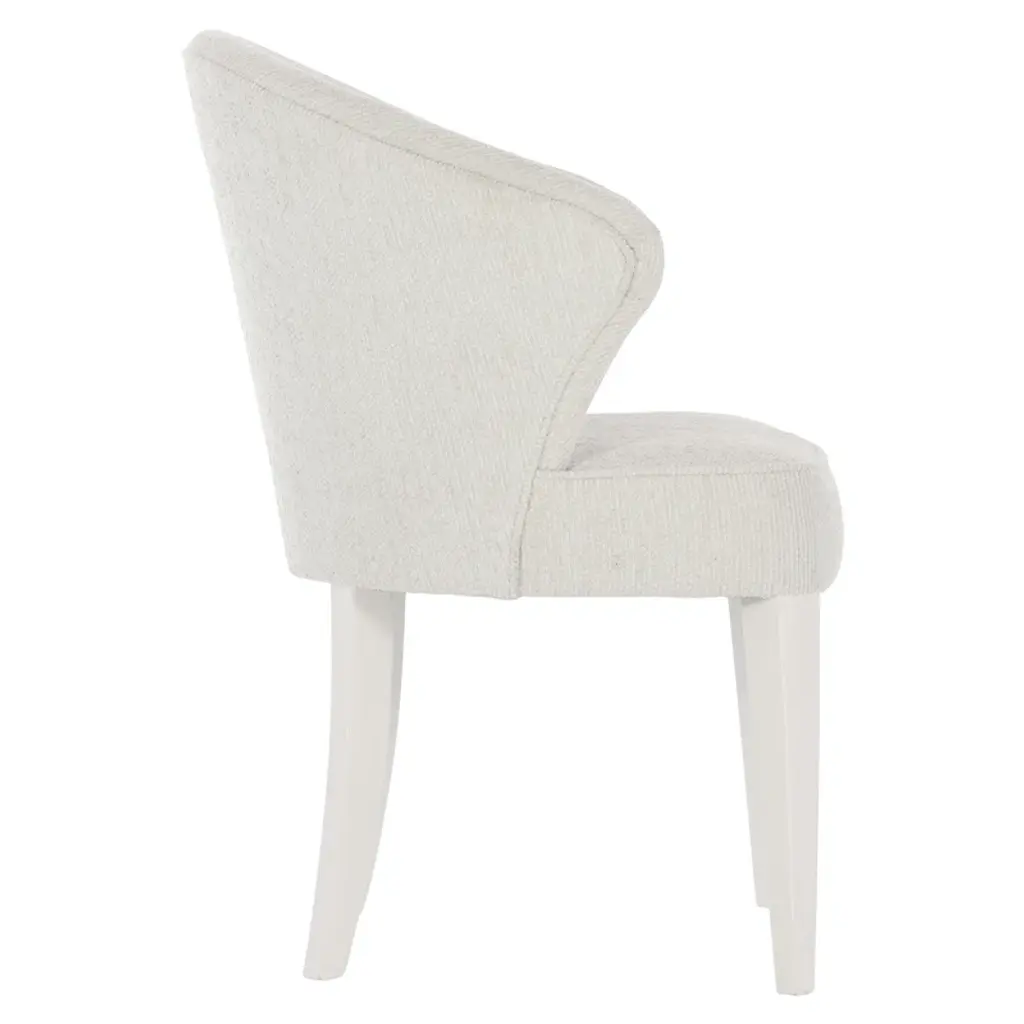 Pretty and feminine with a timeless appeal, this fully upholstered armchair features elegant contours and soft, textured fabric.
