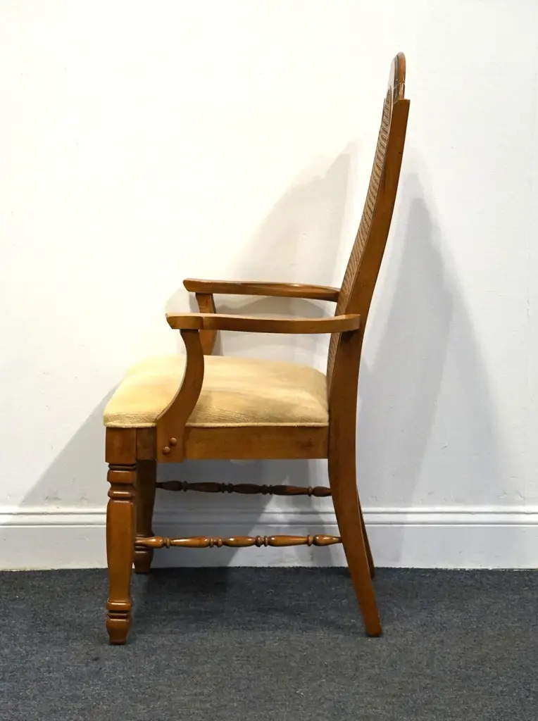 Singer Furniture Solid Pecan Italian Mediterranean Style Cane Back Dining Arm Chair