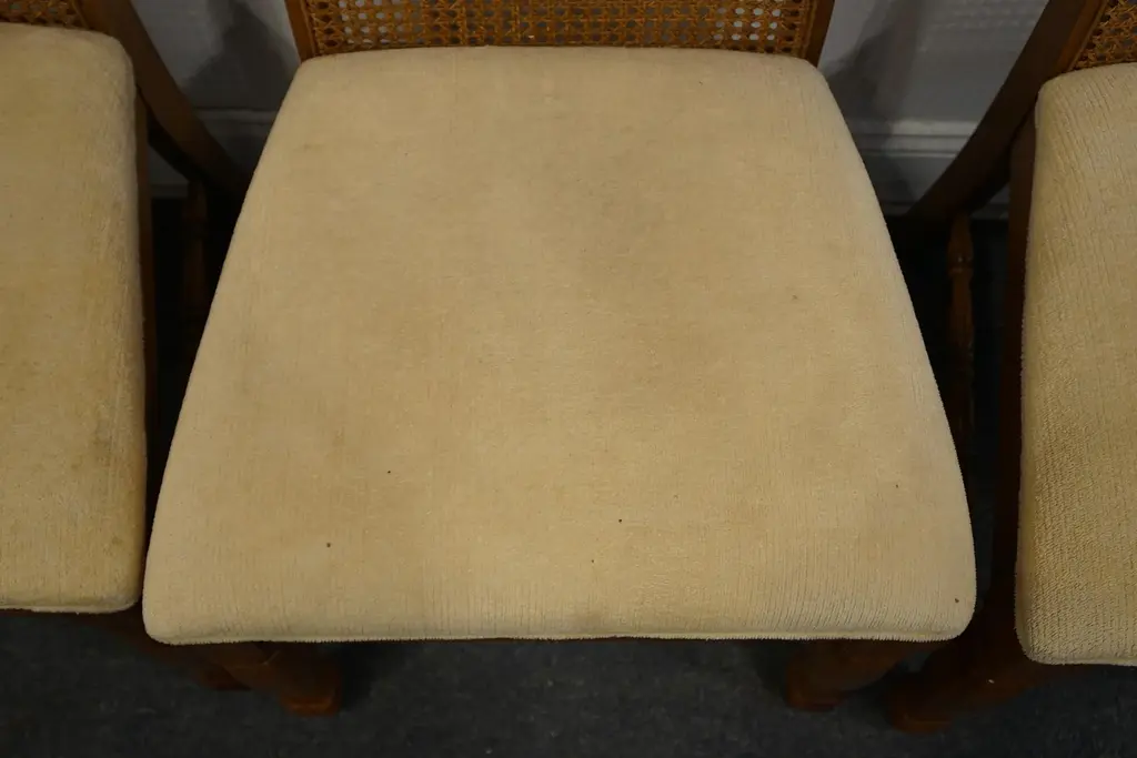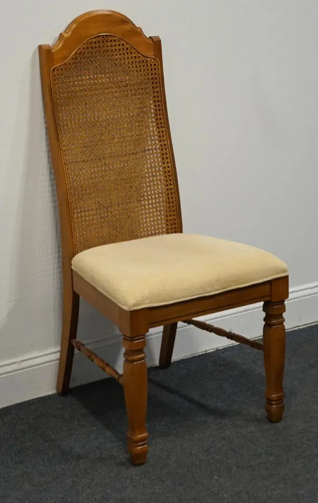 SINGER FURNITURE Solid Pecan Italian Mediterranean Style Cane Back Dining Side Chair 43" High 20" Wide 22" Deep Seat: 19" High We specialize in high end used furniture that we consider to be at least an 8 on a scale of 1 to 10 regarding condition, unless otherwise noted.
