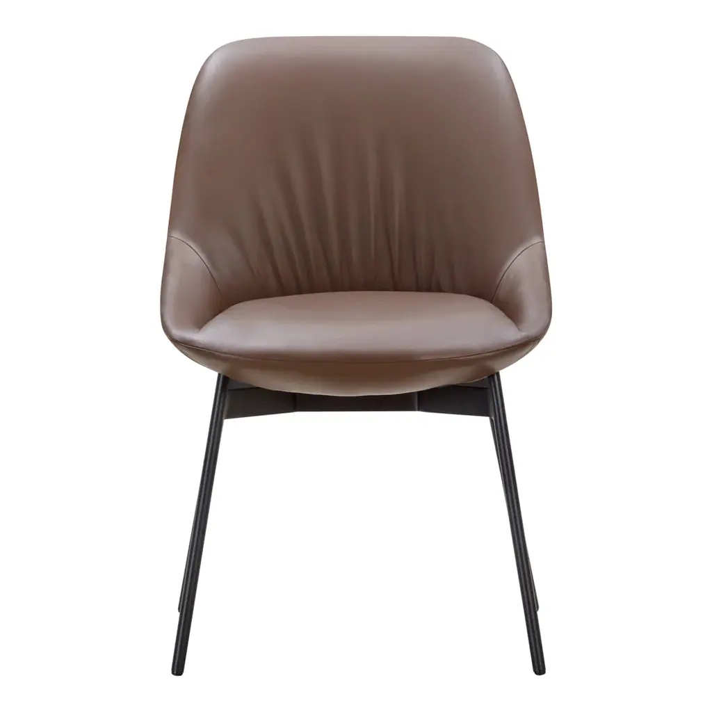 Deriving from the Latin word for ‘pocket', the Sinum Chair aptly takes up little space in a room – be it the conference room, the hotel room, or the dining room. The seat is characterised by a curved pocket of padding, ensuring uncompromising comfort, enclosed by armrests sloping upwards to the backrest, featuring distinct pleated detailing.