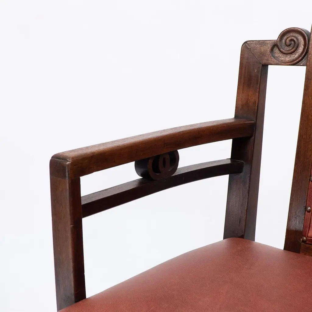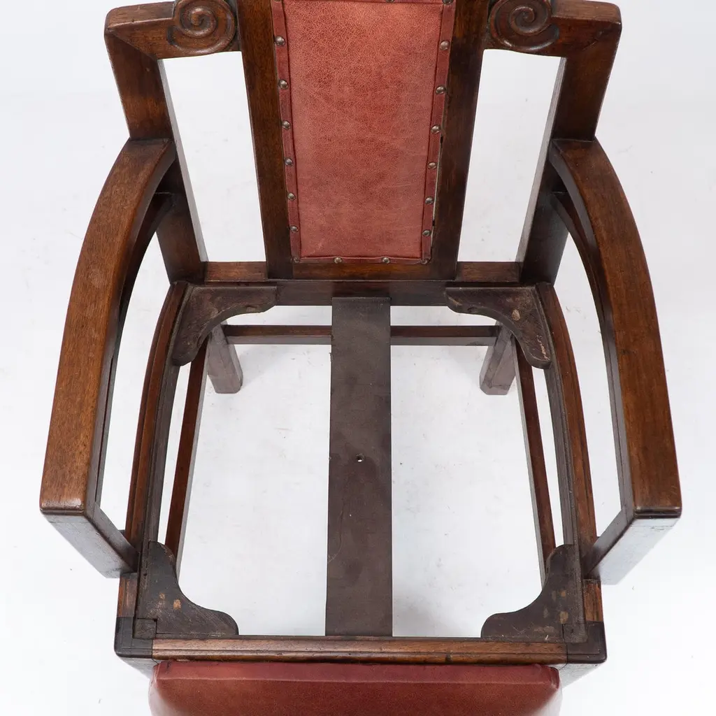 Sir Frank Brangwyn Attr. Pair Of Arts & Crafts Mahogany Armchairs Chinese Style