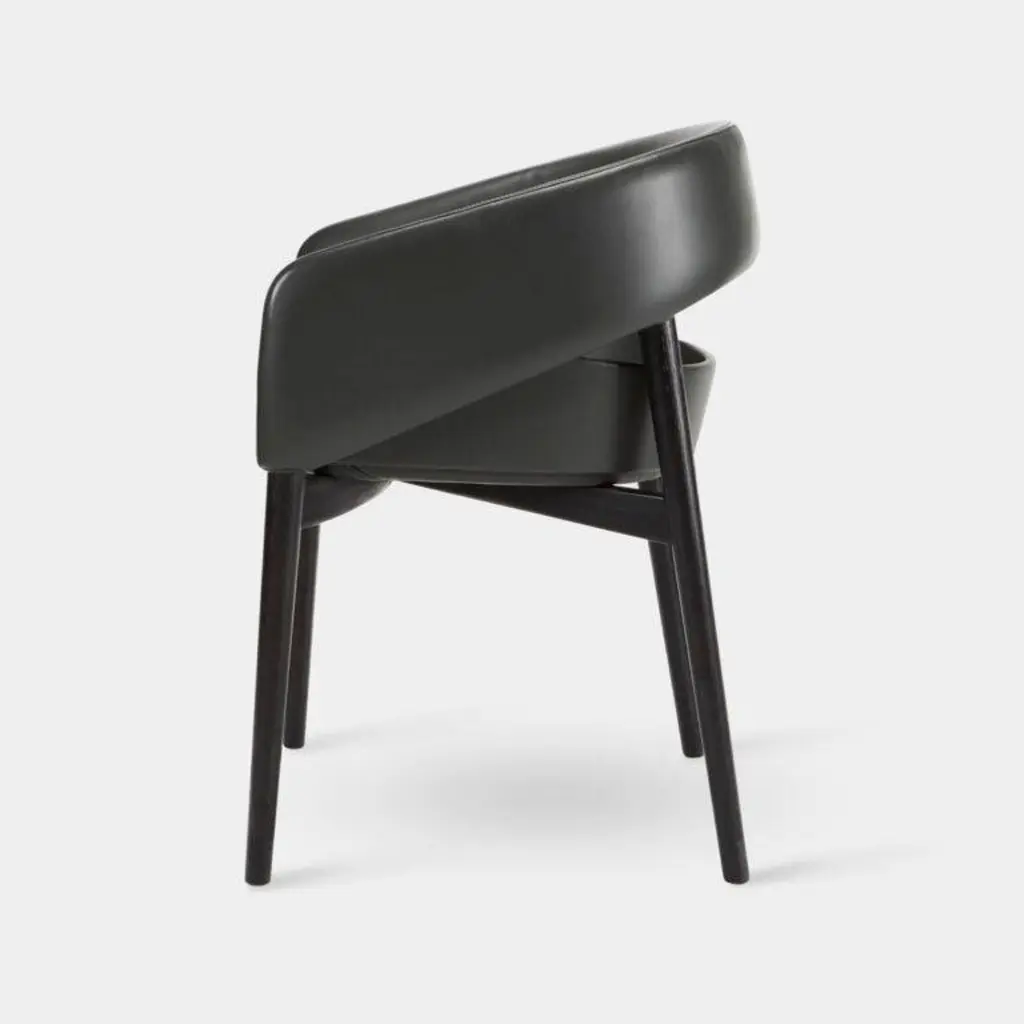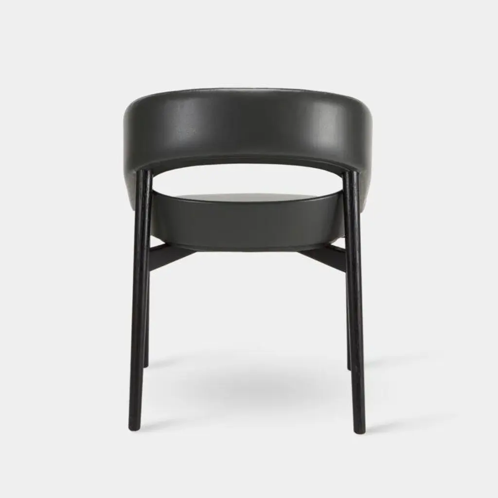 American white oak frame painted in blackSeat and back upholstered in genuine black leather.A big hug around your body, or a light cover around your soul for a superb seating experience.Contact us to enquire about COM/COL production, requirements and material shipping instructions.Please contact us if you have any questions about customization and pricing. We will be glad to check with the factory’s technical team if sizes, finishes, and colors can be customized. We do our best to expedite production and to ship and deliver product within the listed lead time, however current lead times might be longer due to global shipping backlog and delays. These delays are out of our control and cannot be a reason to cancel an order.
