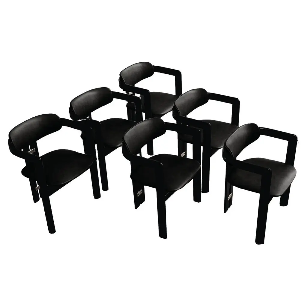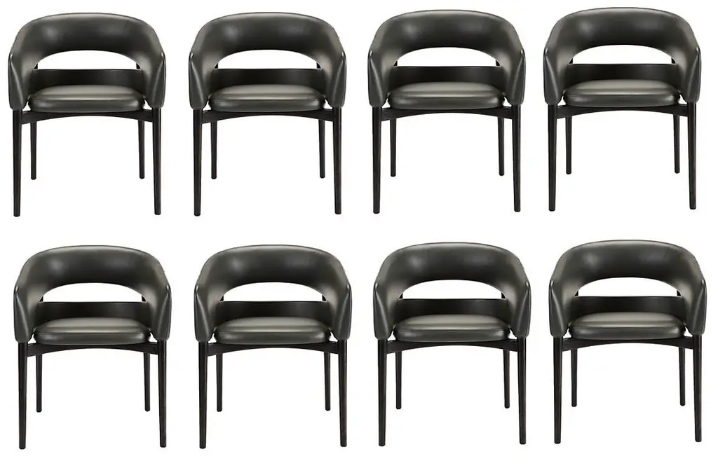 Six Contemporary Dining Chairs, Black Lacquer/leather