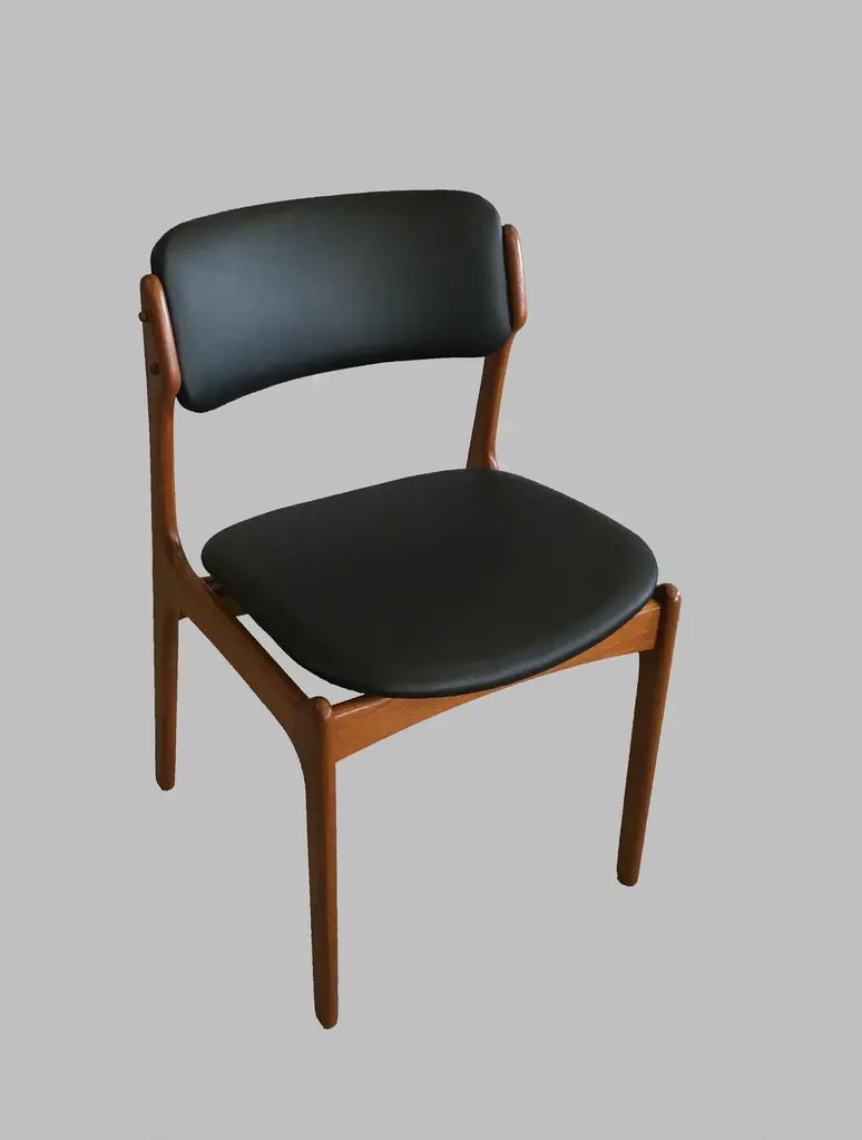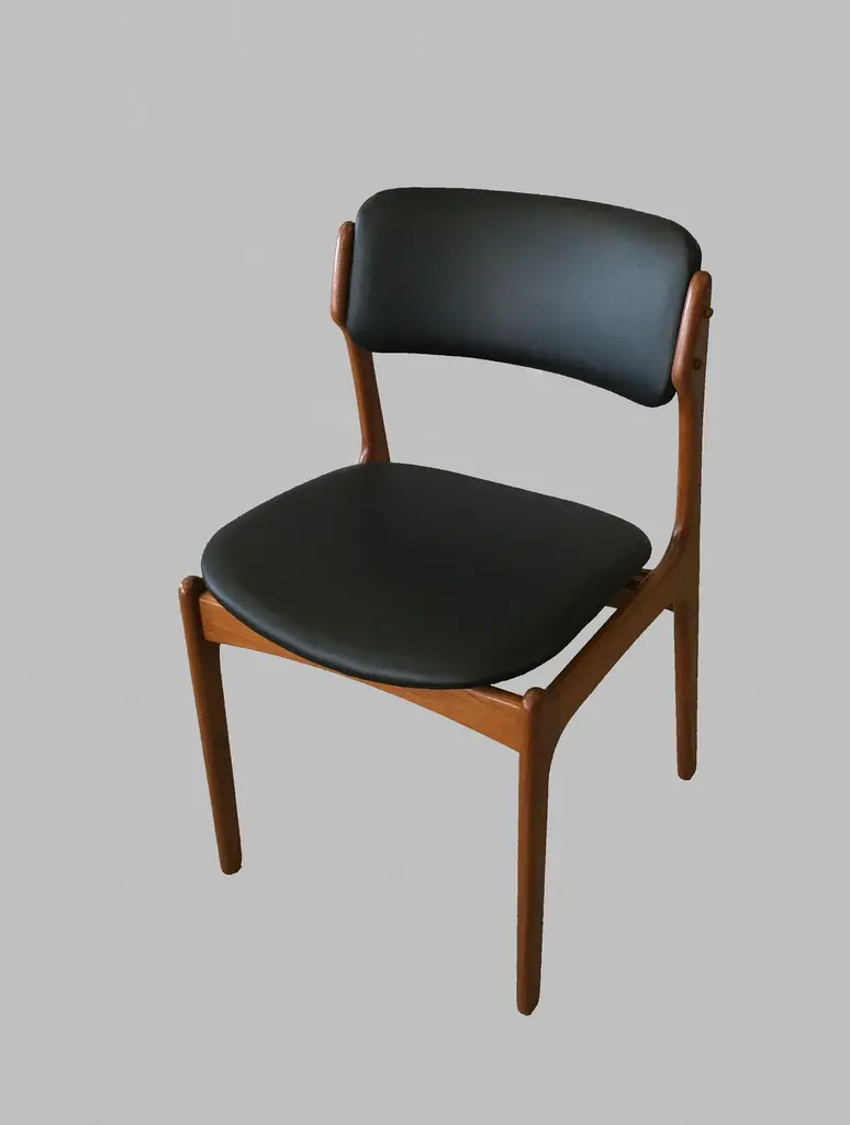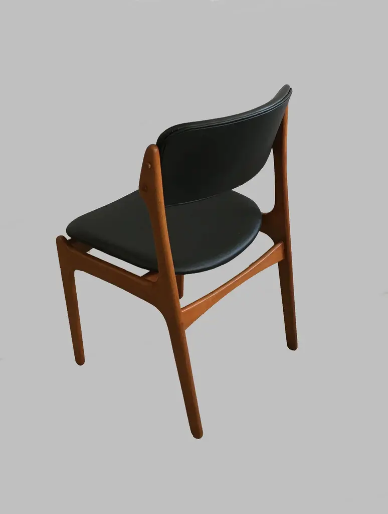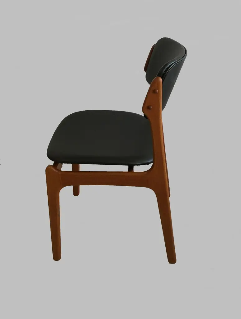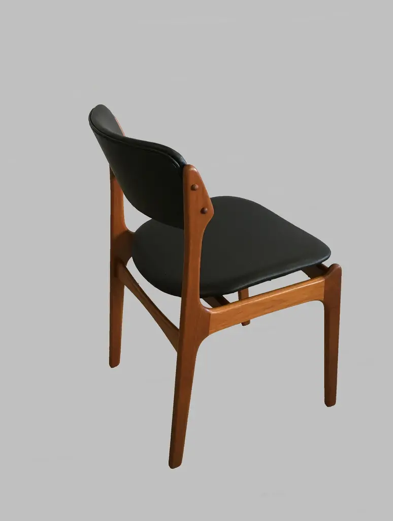 Six Fully Restored Erik Buch Teak Dining Chairs, Reupholstered In Black Leather
