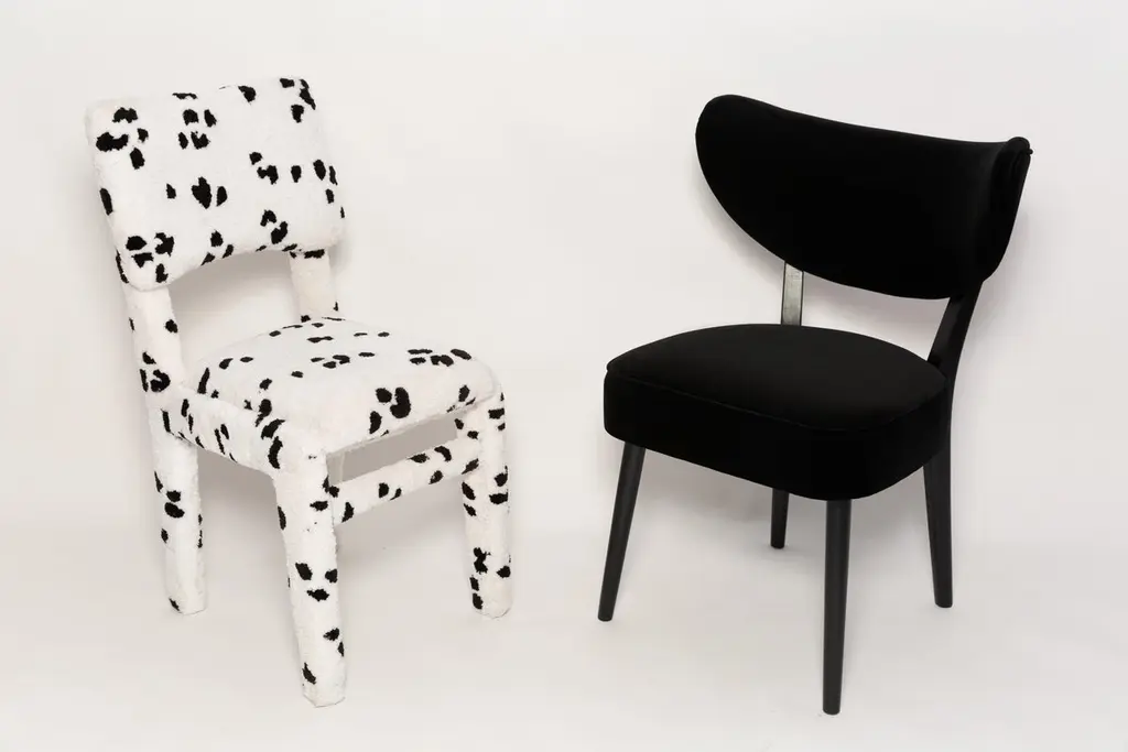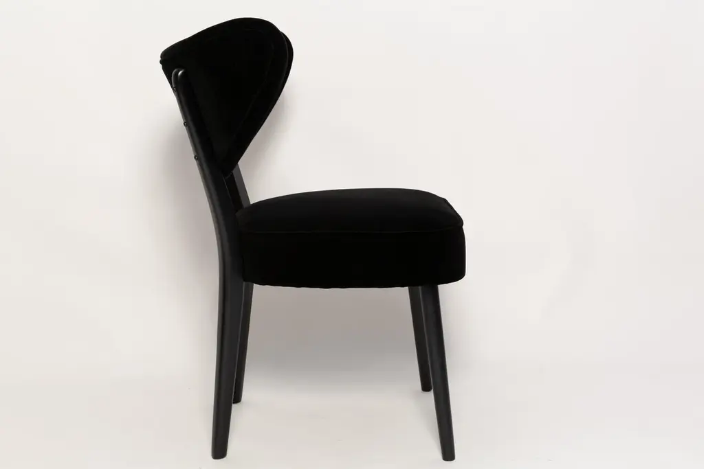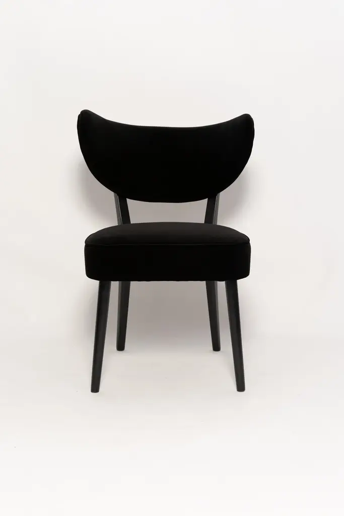 Cruella Set – “Vintola Dining” ChairA contemporary piece with the soul of the 1960s. Designed by Ola Szewczul for Vintola Studio, this chair blends elegance, nobility, and everyday comfort. It was created for interiors where refined form meets functionality.Springy, very comfortable, and perfectly stable, it can serve as both a dining or accent chair. Handcrafted since 2024 at the Vintola Studio factory in Poland.Dimensions: 55 x 50 x h 82 cmAbout the fabric:A soft, thick velvet of pure cotton woven in Italy. A plain of the textile tradition that is hardwearing, versatile and water-repellent, Adamo & Eva is perfectly suited to upholstery and curtain applications.Composition: 100% CottonWeight: 630 g/mlMartindale: 50000Made in ItalyAll options of fabrics and wood colors are possible to prepare. Change of dimensions are also possible.Please ask for more informations.Here set of 6 chair is available.