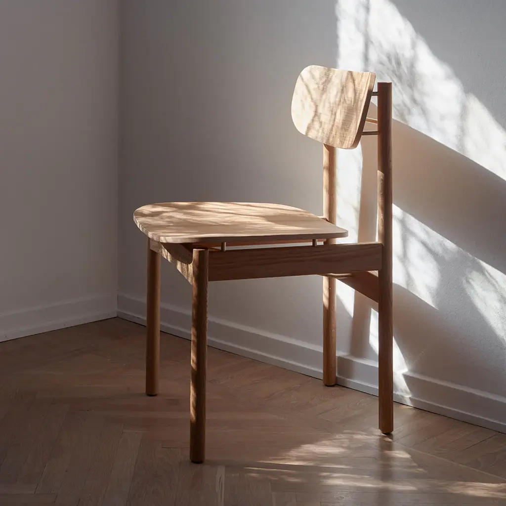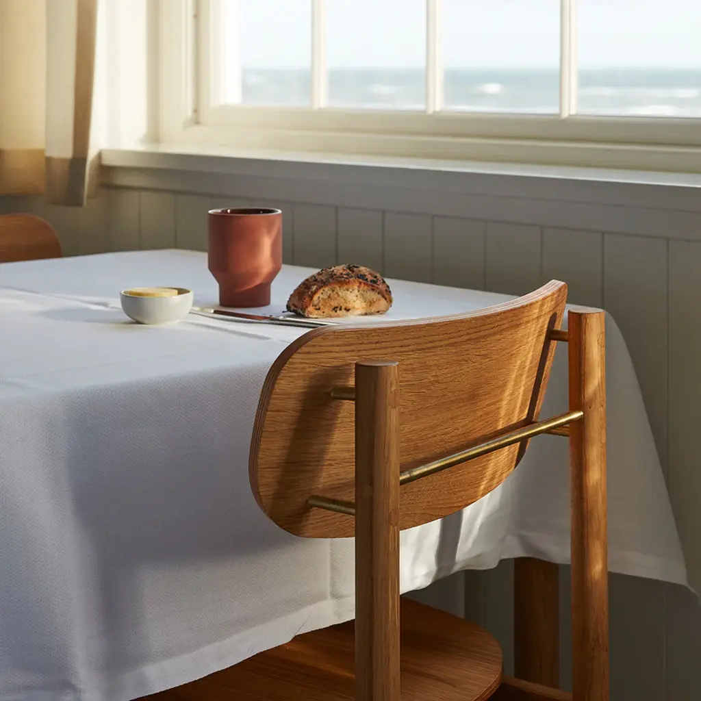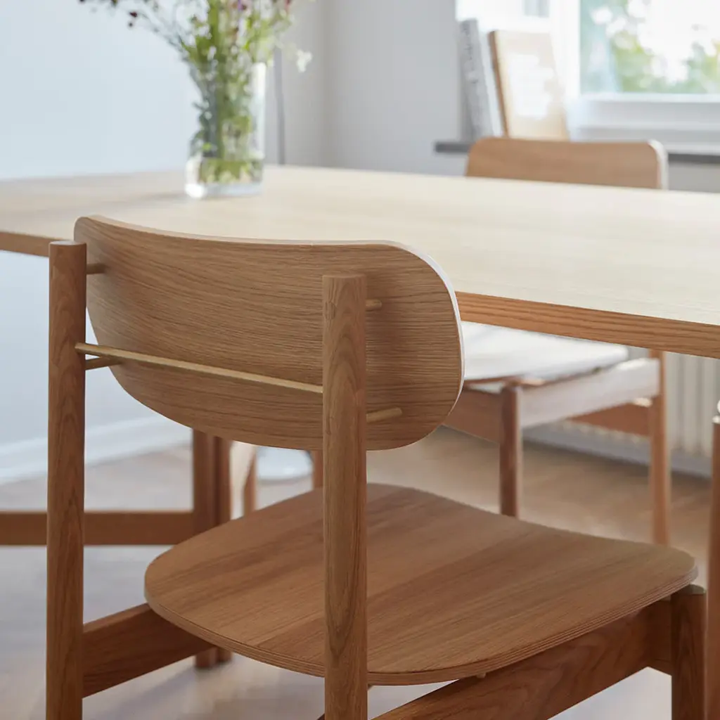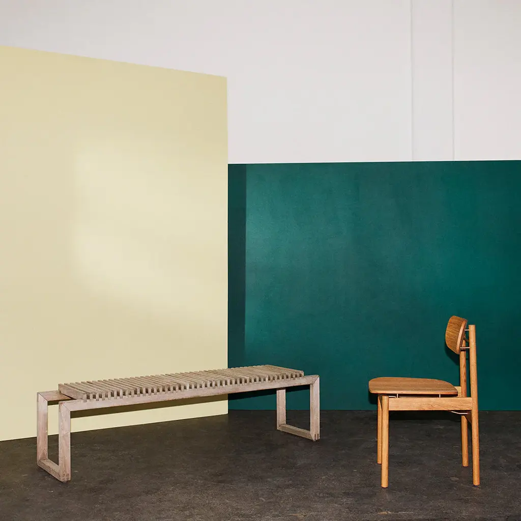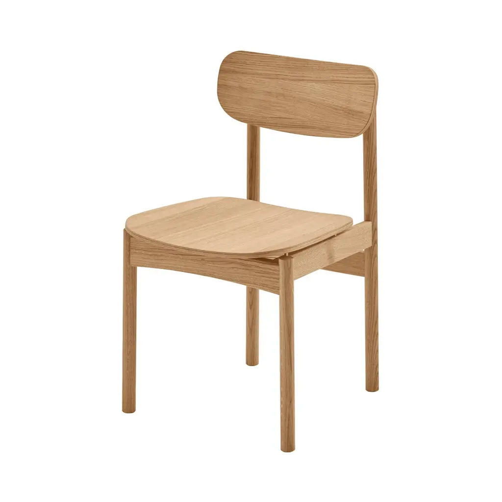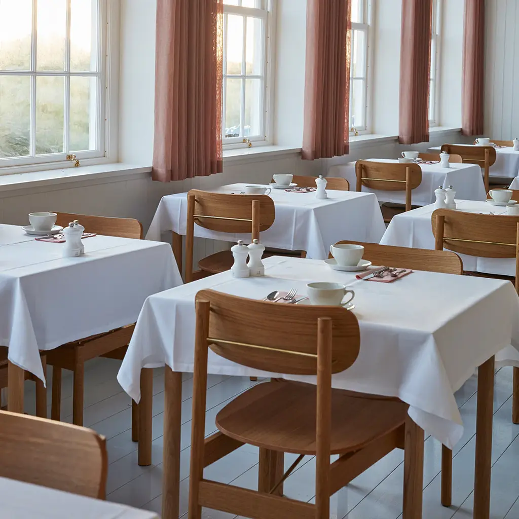 A transverse brass rod that indicates where you pull out the chair. Legs that continue up into the backrest and becomes a small hook, where you can hang your purse. A body in golden oiled oak that naturally contrasts the details in brass. A dining chair designed in a well-proportioned idiom, making it a comfortable seat. Vester Chair is elegant in a discreet way and understated without losing its momentum. Vester Chair is developed and produced by Skagerak for the seaside hotel, Svinkløv Badehotel. Cushion sold separately. Vester Chair won ”Furniture of the year” at Danish Design Awards 2020.