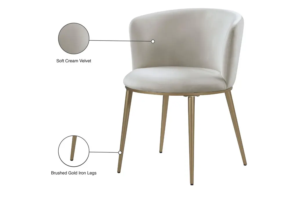 Skylar Cream Velvet Dining Chair With Brushed Gold Finish Set Of 2