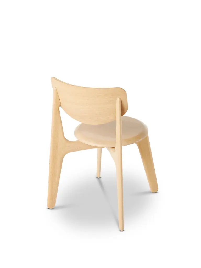 The Slab dining chair, part of the Slab collection, showcases the natural beauty of sustainably sourced oak. It features generous proportions, a gently rounded edge, and a deeply brushed surface that exposes the wood's natural grain, adding a unique, refined character to any space. Pairs well with the Slab dining table.