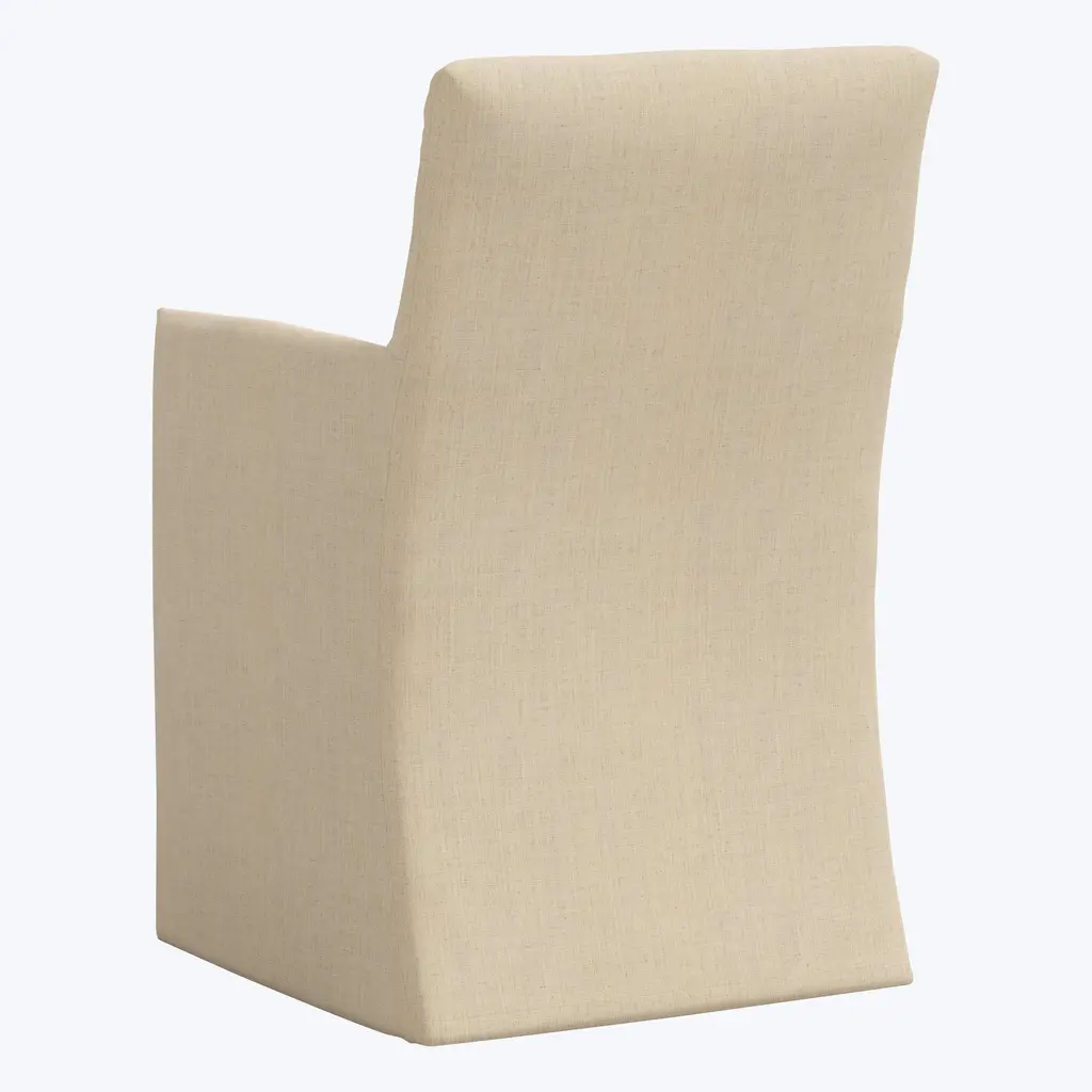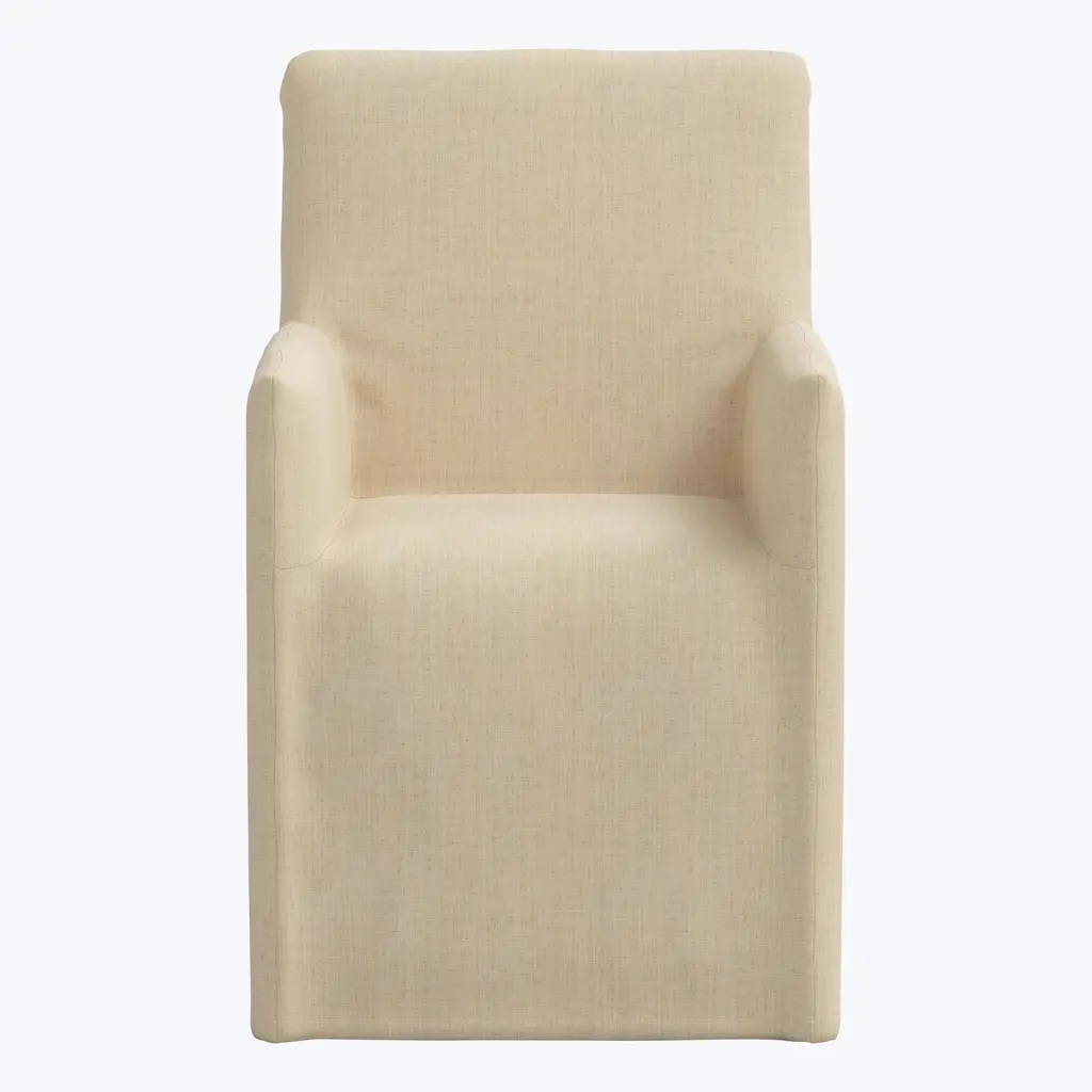 The Slipcover Dining Armchair, an ABC Carpet & Home exclusive, offers a perfect harmony of timeless elegance and modern comfort. Handcrafted in the USA, it features a sturdy yet lightweight frame constructed from FSC-certified wood, ensuring strength, longevity, and responsible craftsmanship. Wrapped in soft, lightweight textiles perfect for slipping, its tailored cover introduces a refined, versatile finish that suits both relaxed and formal dining spaces. Designed for everyday ease and beauty, the chair’s gently curved arms and graceful lines provide both comfort and visual balance. Measuring 24 inches wide, 26 inches deep, and 38 inches high with a 20-inch seat height, it offers inviting proportions that enhance any table setting. The removable slipcover allows for simple care and seasonal updates, giving you the freedom to refresh your space with minimal effort. Available in a curated palette of refined neutrals and soft tones, each chair integrates effortlessly into a range of interior styles—from classic to contemporary. With its thoughtful design, exceptional craftsmanship, and sustainable materials, the Slipcover Dining Armchair embodies ABC’s belief that every piece of furniture should bring beauty, comfort, and intention into the home.