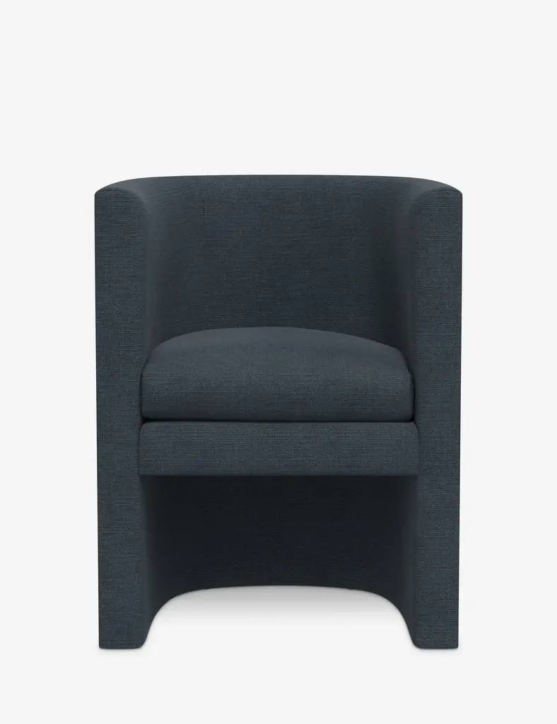 An exclusive piece from abc carpet & home, the Sloane Velvet Dining Chair effortlessly complements your modern retro style with a perfect balance of form and function. Upholstered in luxurious velvet blend, this chair is as pleasing to the eye as it is to the touch, offering a plush seating experience. With dimensions of 26" W x 24" D x 32" H, and weighing 49 lbs, this statement chair brings a touch of sophistication to your dining room or entertaining area. This rounded dining chair is custom-made and crafted in Illinois, ensuring both quality and style in every detail. Available in various rich color options, it’s the ideal piece to elevate any setting. The Sloane Dining Chair features a body-hugging rounded back and elevated armrests that provide excellent support and comfort while adding a timeless elegance to your dining space. Whether used for daily dining or hosting guests, the Sloane Velvet Dining Chair adds a chic and comfortable touch to any space, bringing style and elegance to every meal.