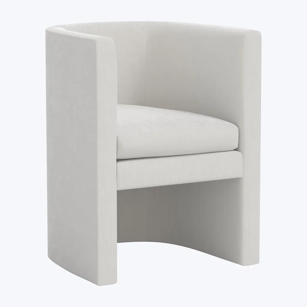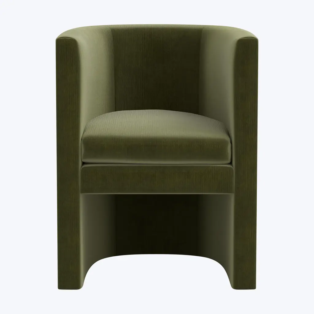 An exclusive piece from abc carpet & home, the Sloane Velvet Dining Chair effortlessly complements your modern retro style with a perfect balance of form and function. Upholstered in luxurious velvet blend, this chair is as pleasing to the eye as it is to the touch, offering a plush seating experience. With dimensions of 26" W x 24" D x 32" H, and weighing 49 lbs, this statement chair brings a touch of sophistication to your dining room or entertaining area. This rounded dining chair is custom-made and crafted in Illinois, ensuring both quality and style in every detail. Available in various rich color options, it’s the ideal piece to elevate any setting. The Sloane Dining Chair features a body-hugging rounded back and elevated armrests that provide excellent support and comfort while adding a timeless elegance to your dining space. Whether used for daily dining or hosting guests, the Sloane Velvet Dining Chair adds a chic and comfortable touch to any space, bringing style and elegance to every meal.