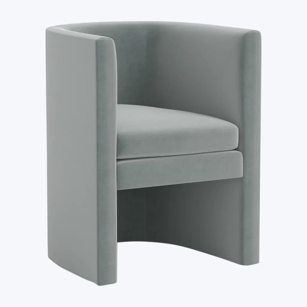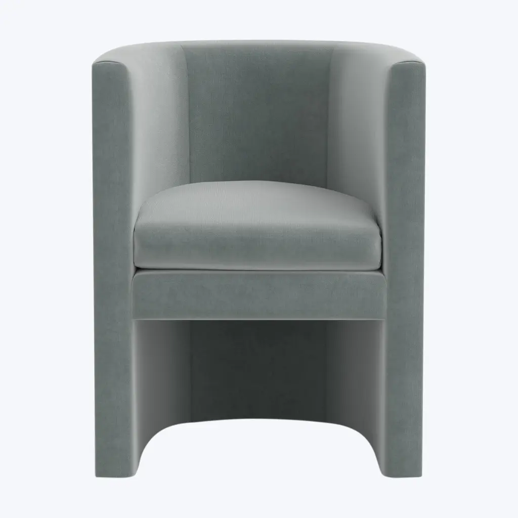 An exclusive piece from abc carpet & home, the Sloane Velvet Dining Chair effortlessly complements your modern retro style with a perfect balance of form and function. Upholstered in luxurious velvet blend, this chair is as pleasing to the eye as it is to the touch, offering a plush seating experience. With dimensions of 26" W x 24" D x 32" H, and weighing 49 lbs, this statement chair brings a touch of sophistication to your dining room or entertaining area. This rounded dining chair is custom-made and crafted in Illinois, ensuring both quality and style in every detail. Available in various rich color options, it’s the ideal piece to elevate any setting. The Sloane Dining Chair features a body-hugging rounded back and elevated armrests that provide excellent support and comfort while adding a timeless elegance to your dining space. Whether used for daily dining or hosting guests, the Sloane Velvet Dining Chair adds a chic and comfortable touch to any space, bringing style and elegance to every meal.