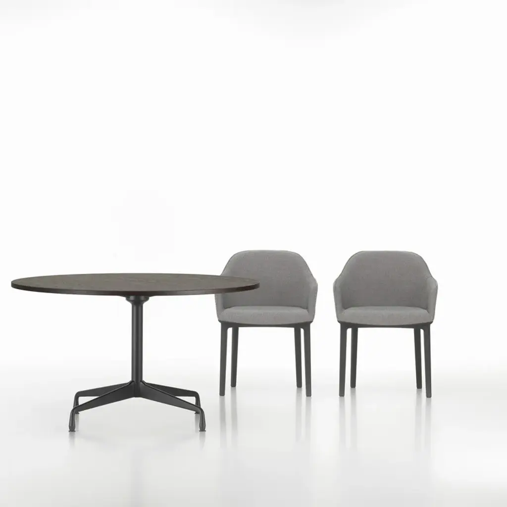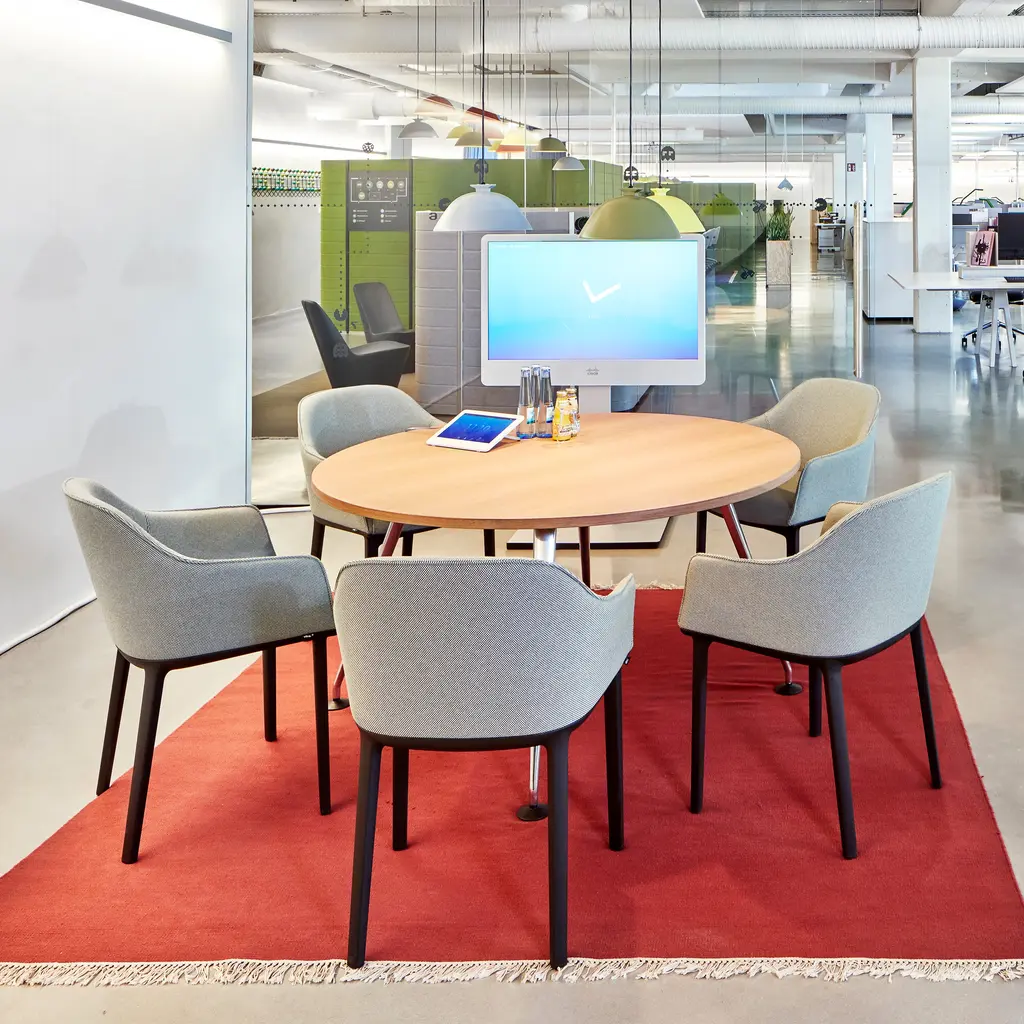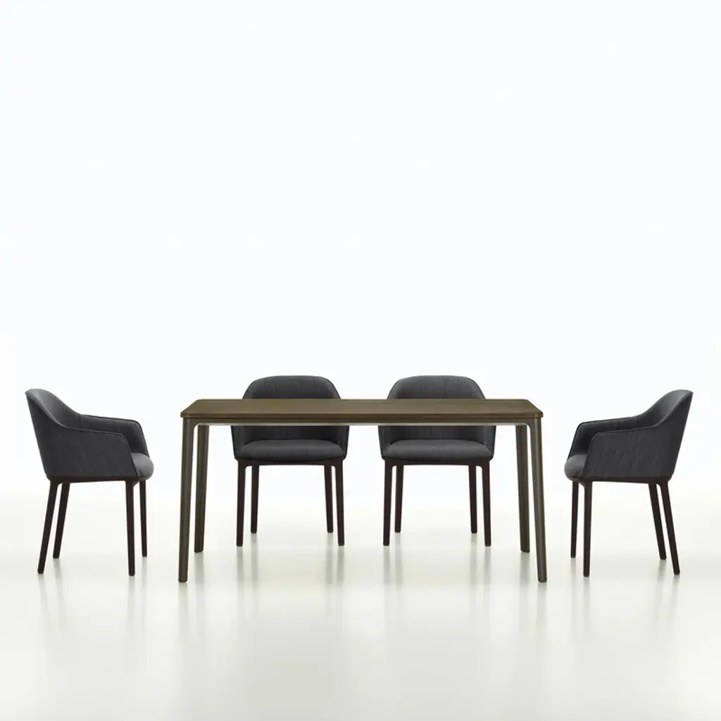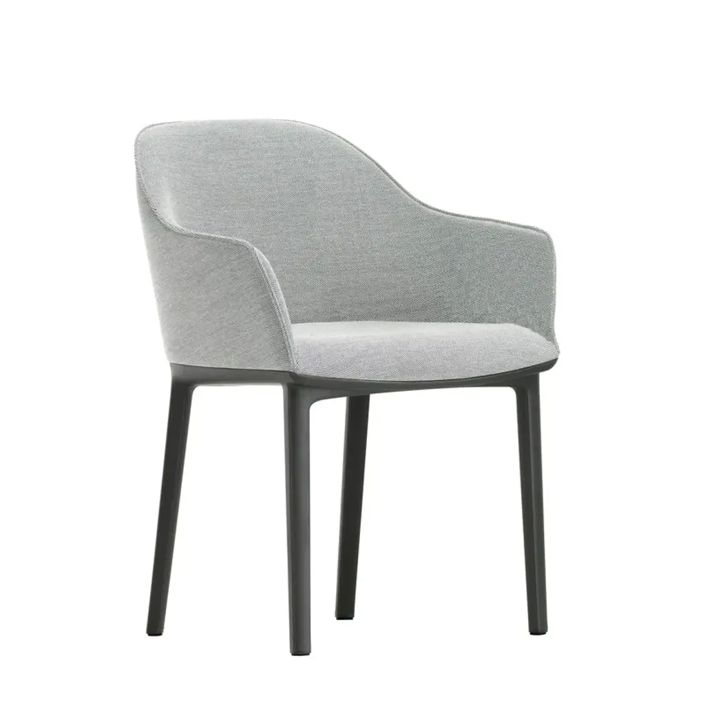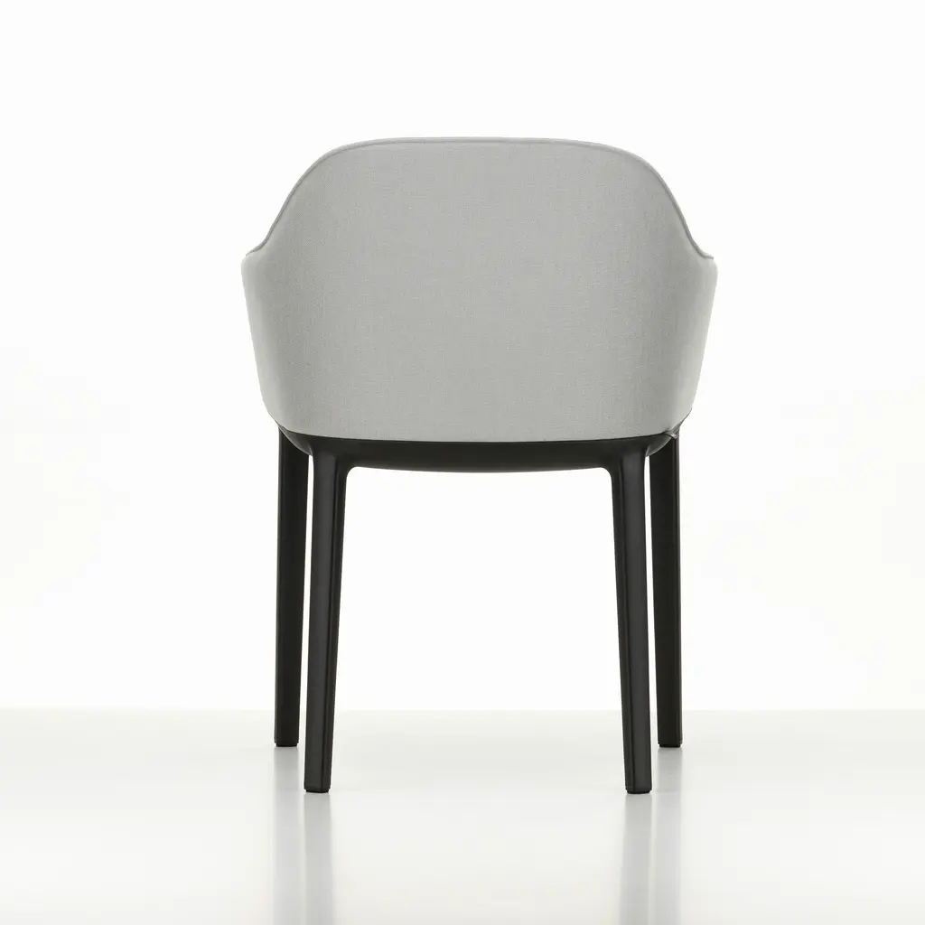The Softshell Chair by Ronan and Erwan Bouroullec will surprise users with its exceptional comfort: flexible ribs are concealed in the back shell and adapt to the user, providing freedom of movement. The four-legged version of the elegant, lounge-style chair can be combined with a wide selection of dining tables. The seat construction of the Softshell Chair ensures a level of comfort that is first revealed upon use: vertical ribs concealed in the back shell adapt to the user, providing freedom of movement as well as superb comfort, even for prolonged periods of sitting. The smooth contours and appealingly soft upholstery over the entire surface give the Softshell Chair its calm, cosy and inviting character. Features
