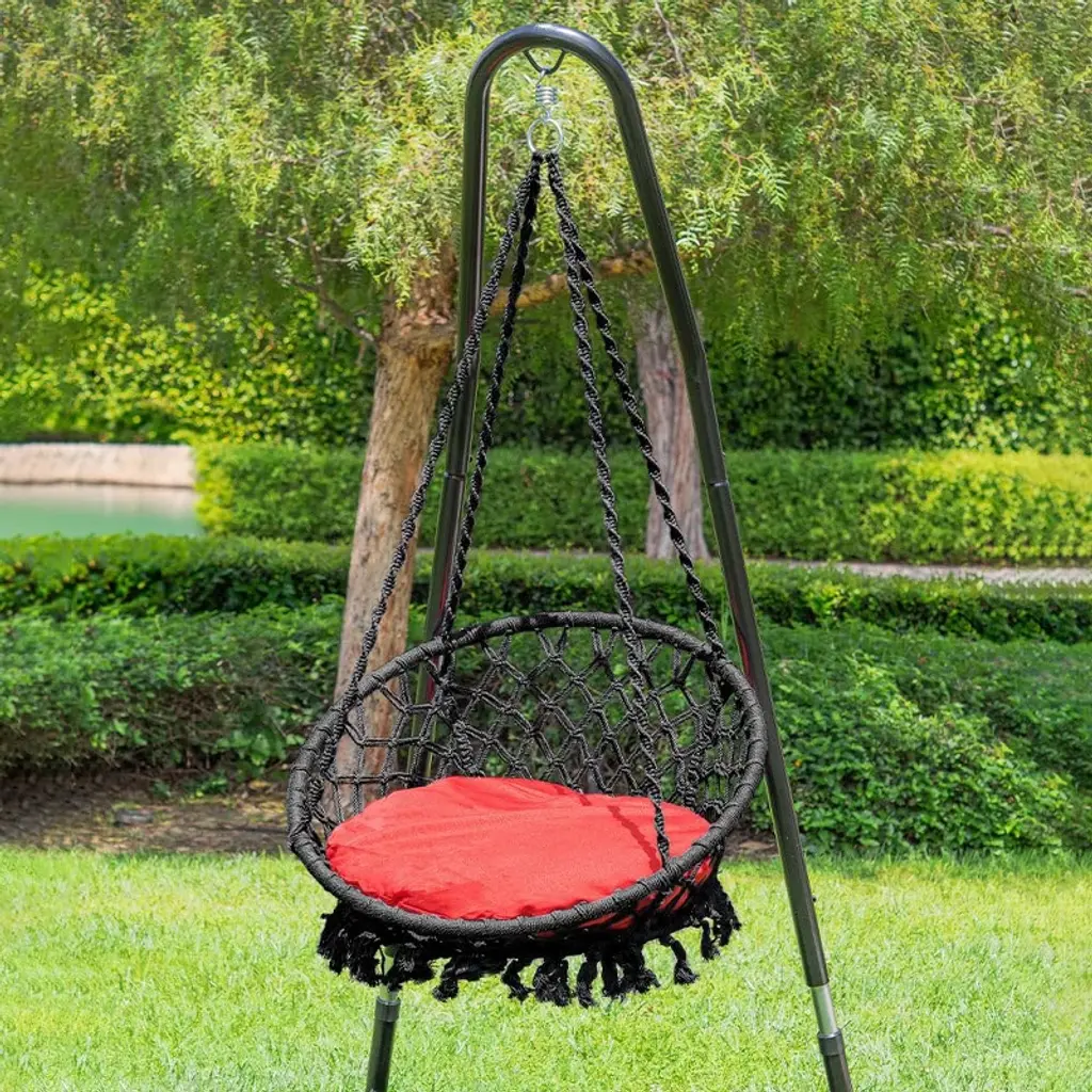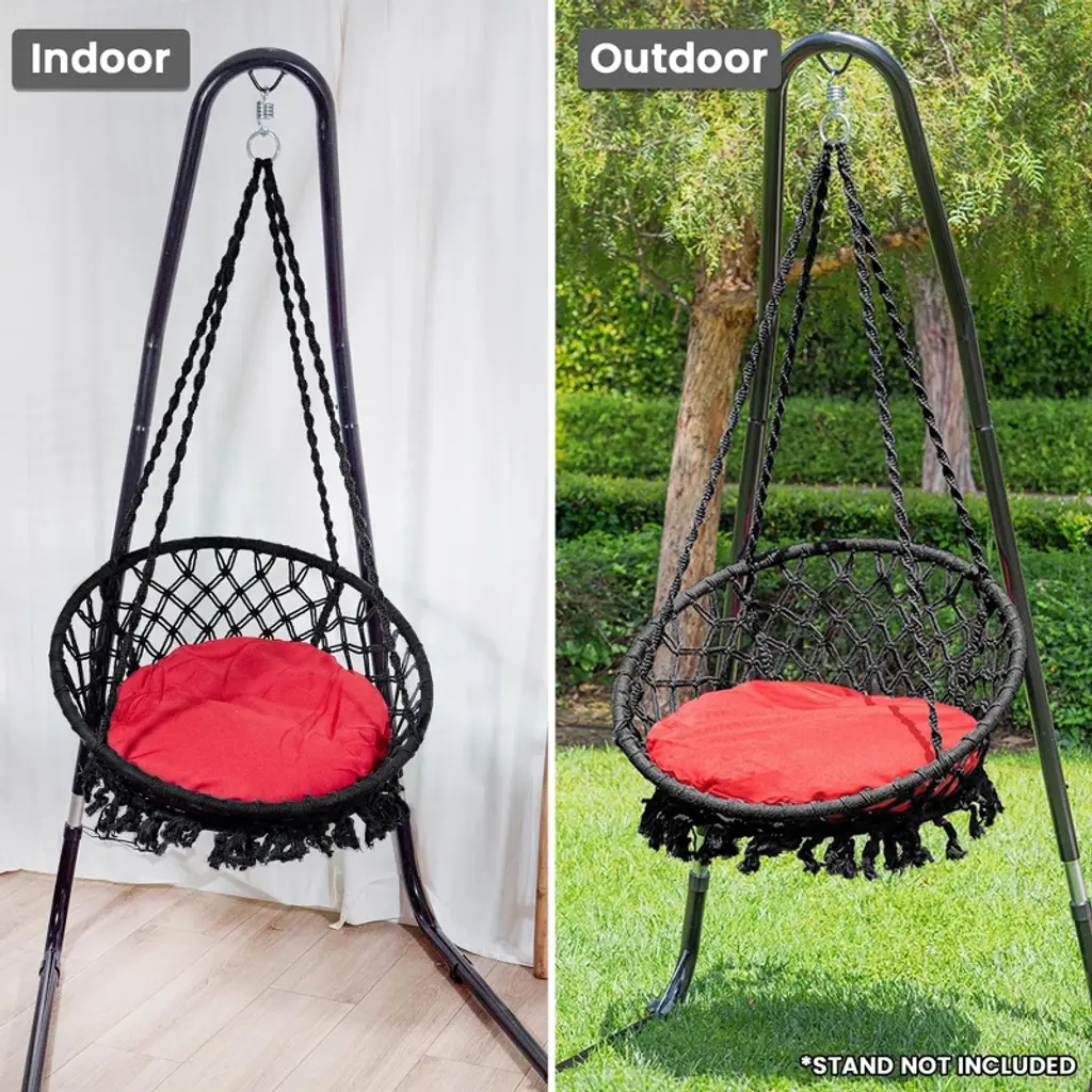 Sol Living Bahia Macrame Hammock Chair For Indoor & Outdoor Use With Cushion – Black/red