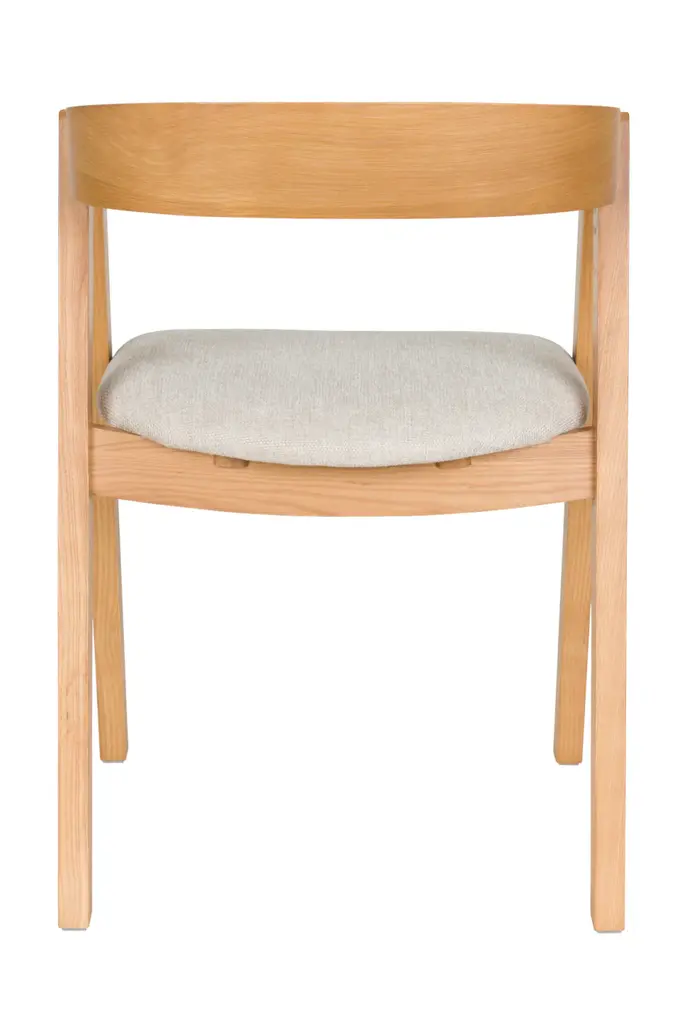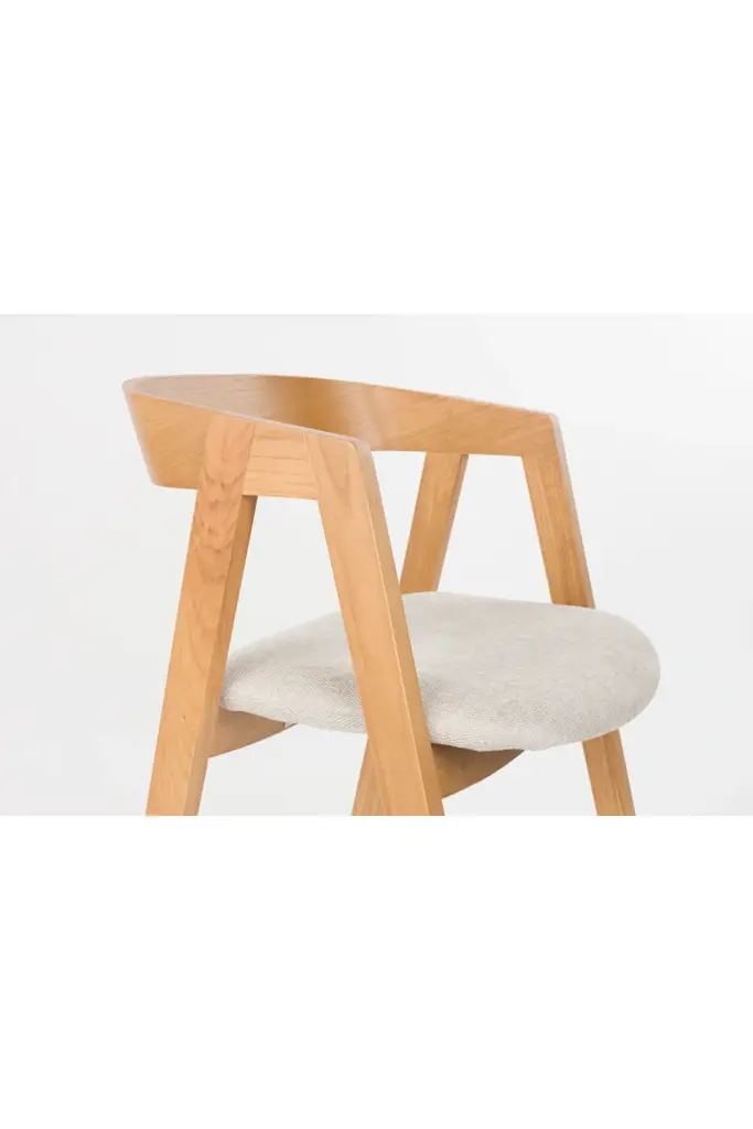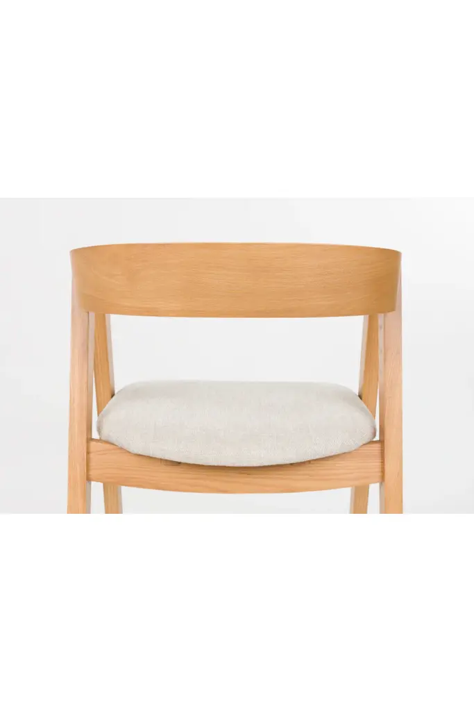 This stylish piece effortlessly adds a cozy touch to the dining room. The solid ash wood legs seamlessly transition into the perfectly curved backrest, which, combined with the upholstered seat, ensures exceptional comfort. As the finishing touch, the contrast between the light fabric and the deep walnut color creates a striking effect.