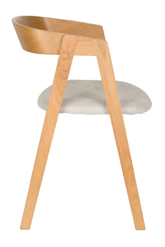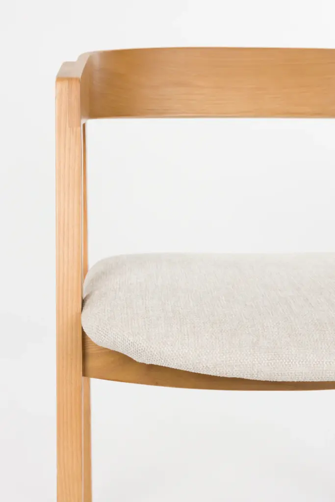 This stylish piece effortlessly adds a cozy touch to the dining room. The solid ash wood legs seamlessly transition into the perfectly curved backrest, which, combined with the upholstered seat, ensures exceptional comfort. As the finishing touch, the contrast between the light fabric and the deep walnut color creates a striking effect.