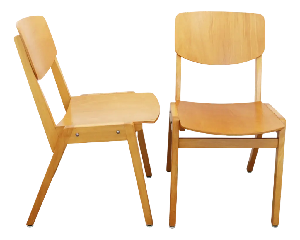 Solid Pine Dining Chairs Attributed To Rainer Daumiller - A Pair