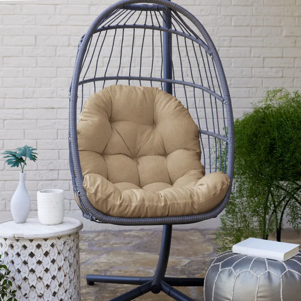 Take your outdoor space to the next level with this versatile tan egg chair cushion. Featuring a stunning multi textured fabric, this seating is sure to add comfort and style to any size space, from the porch to the pool. Crafted out of a strong, weather-resistant material right here in North America, this cushion is made to withstand wear and tear so all you have to do is sit back and relax! • Furniture not included• Includes one (1) Egg Chair Cushion• Egg Chair cushion cover cannot be removed• Available in a variety of colors to ensure that you find the perfect match for your dcor style• The eco-friendly fill is 100% recycled polyester• Spot clean with mild detergent and water when needed• Made in North America•