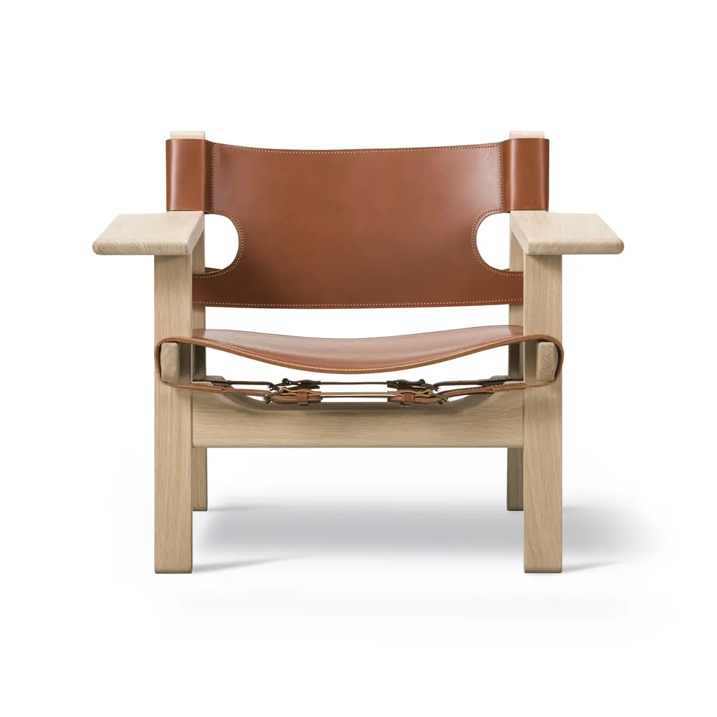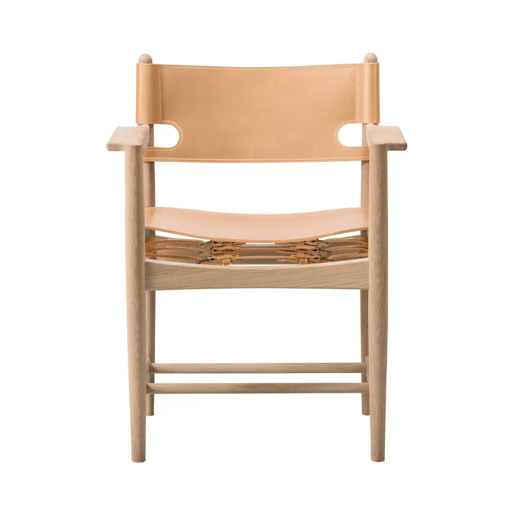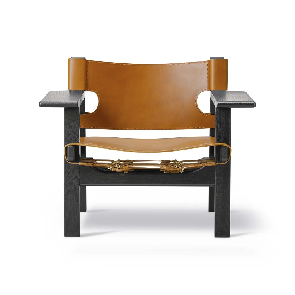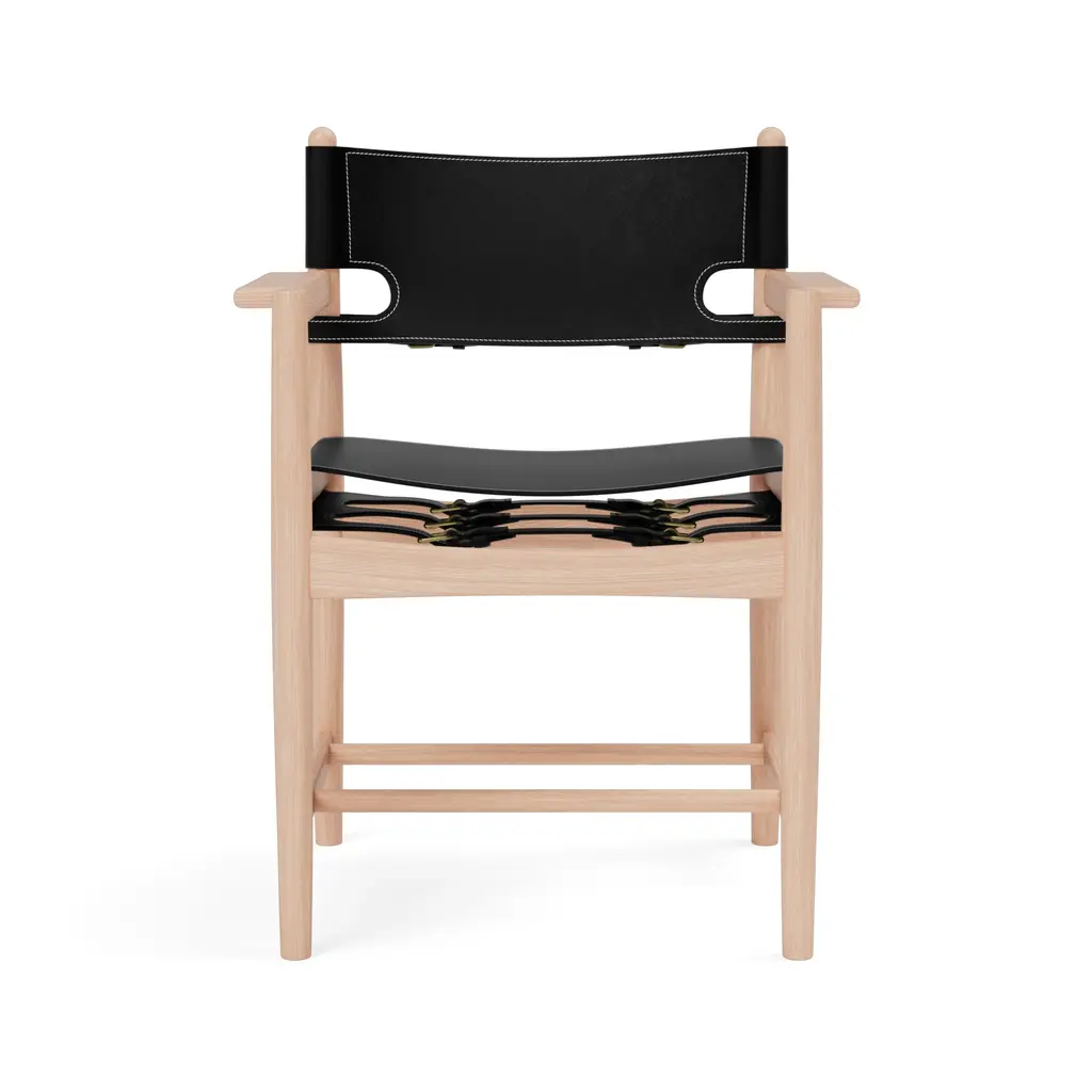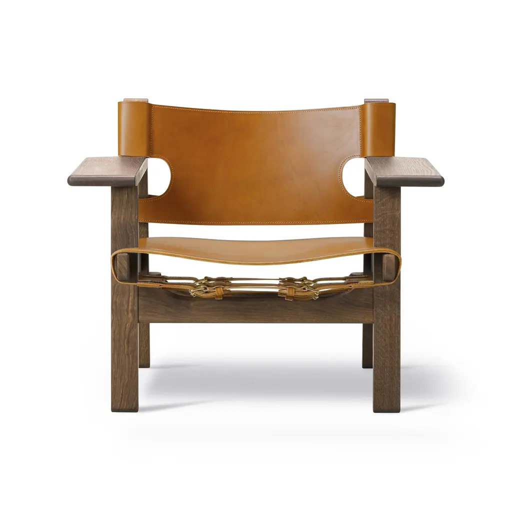 Designed by Børge Mogensen with a focus on human-centered and lasting craftsmanship, the Spanish Dining Armchair from Fredericia Furniture, masterfully elevates any interior. Crafted from sustainably-sourced solid wood and high-quality saddle leather, it's unique form is as functional as it is beautiful. As the leather stretches over time, hidden adjustable straps allow for a personalized and comfortable fit. Highlights