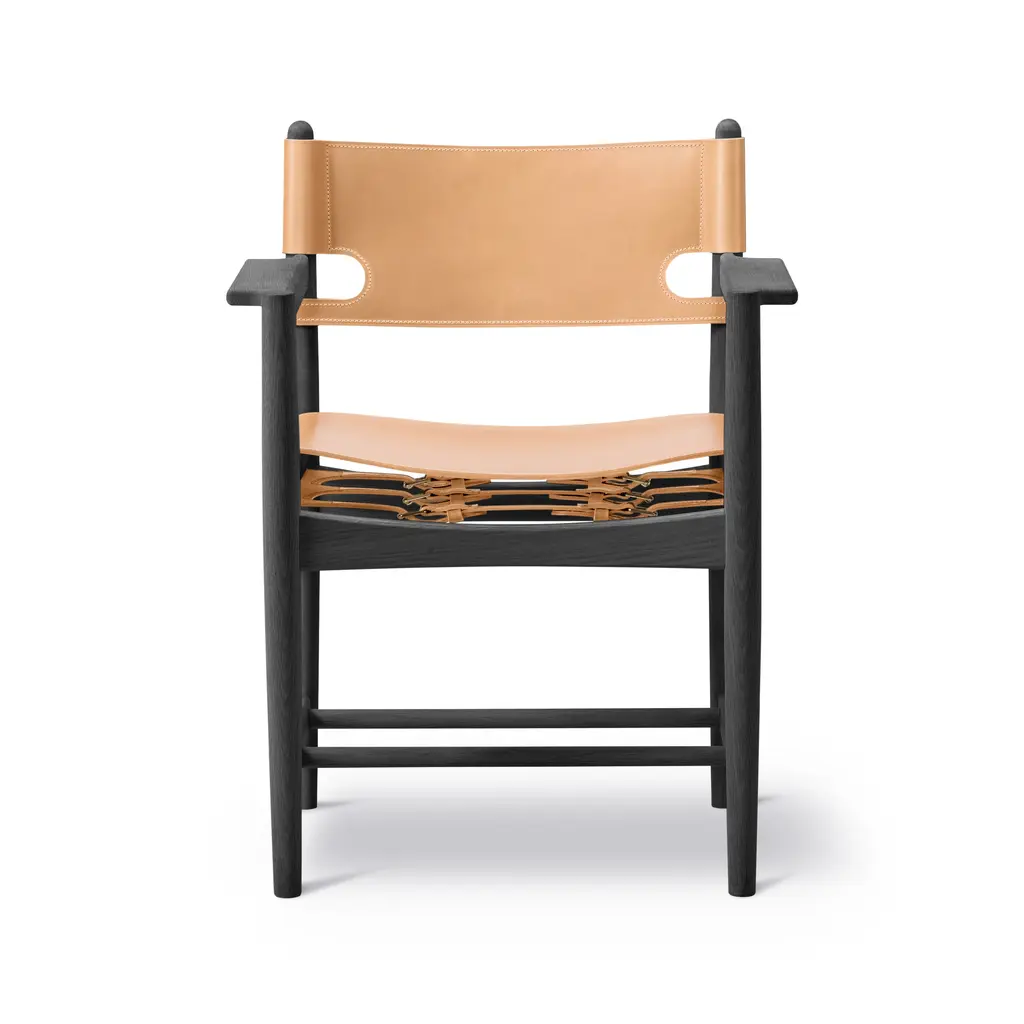 Designed by Børge Mogensen with a focus on human-centered and lasting craftsmanship, the Spanish Dining Armchair from Fredericia Furniture, masterfully elevates any interior. Crafted from sustainably-sourced solid wood and high-quality saddle leather, it's unique form is as functional as it is beautiful. As the leather stretches over time, hidden adjustable straps allow for a personalized and comfortable fit. Highlights