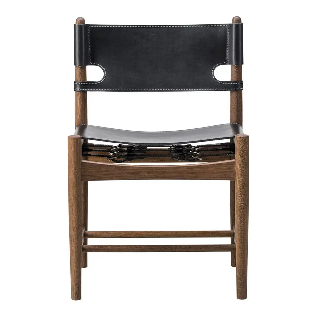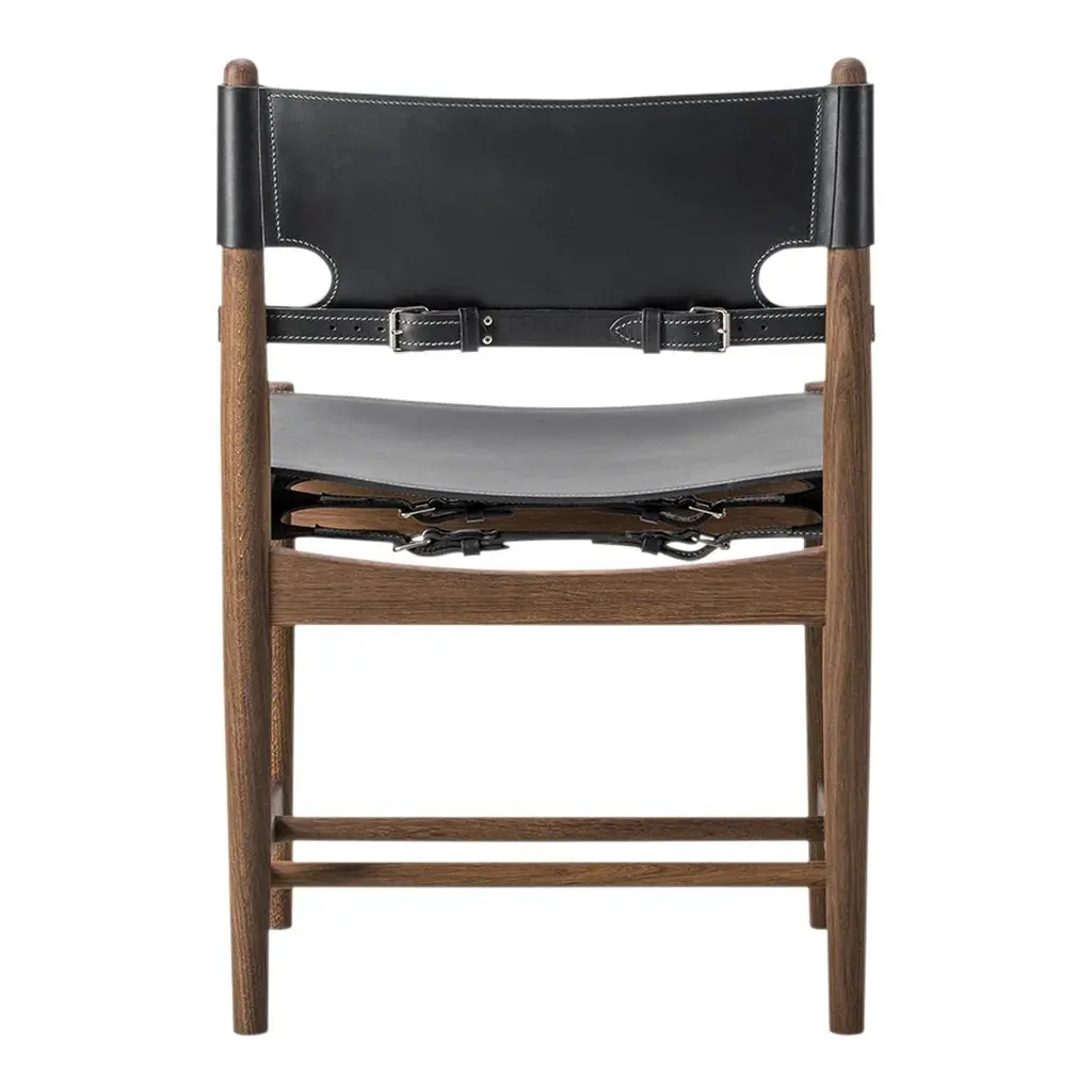 The Spanish Dining Chair brings Borge Mogensen's timeless design to the dining room. It is a testament to the application of honest materials. Crafted from the finest selection of oak and flawless saddle leather, the chair is available with or without armrests, and with multiple finishes from light to darker shades, depending on the atmosphere you want to create.