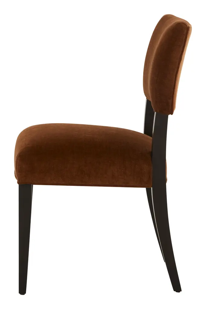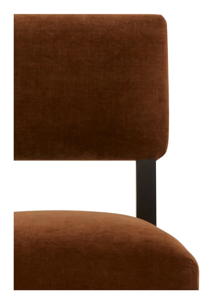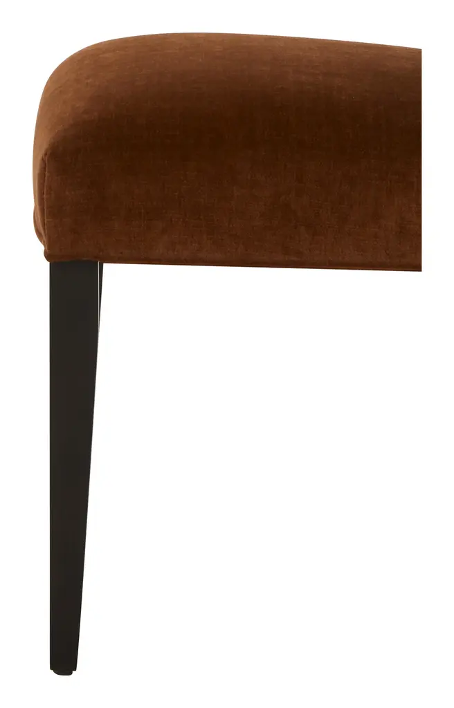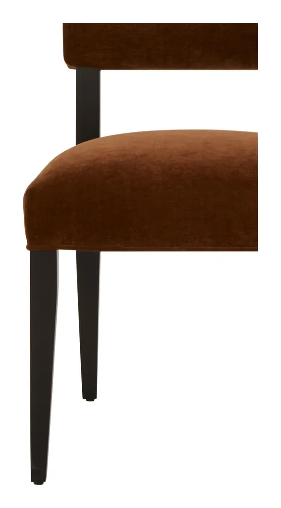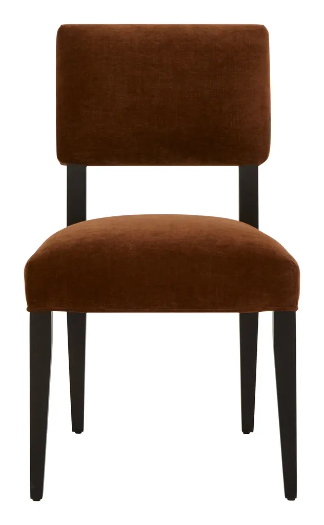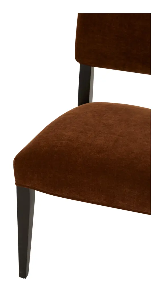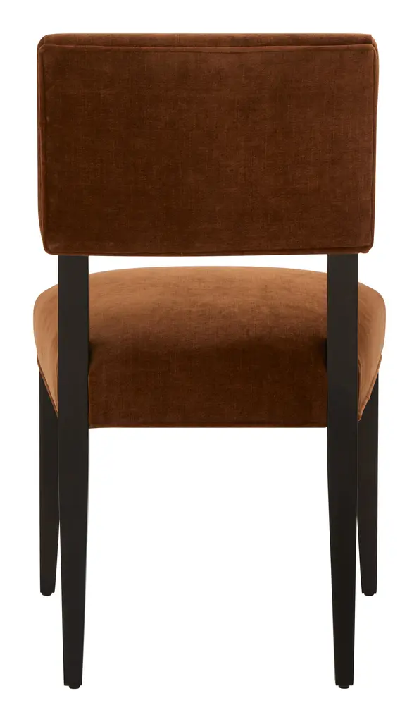 Up your dining room’s style with our sleek and sophisticated Spender Side Chair. Simple and clean-lined in shape, this dining chair features a firm and supportive seat cushion, a straight back and perfect proportions, which together make for a comfortably upright sit. The perfect addition to any modern home, we love it in multiples around a chic dining table — especially when paired with our matching Spencer Banquette. •upholstered in athens sienna velvet•fabric content: 100% polyester•wenge wood finish•sustainable construction •custom options available •made in the USADimensions•21"W x 22.5"D x 35"H•seat width: 21"•seat depth: 18.5"•seat height: 20.25"