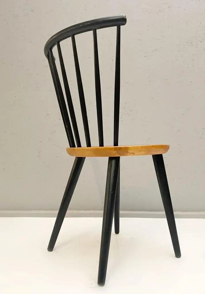 Spindle back dining chairs in the style of Ilmari Tapiovaara, 1960s.