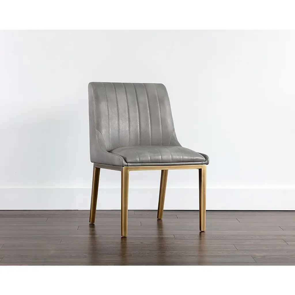 Rounding out your decor while providing sensible seating arrangements in small spaces, side chairs offer style and versatility to any interior design. Take this one for example: fitting in a variety of design aesthetics from industrial to mid-century and more, it showcases a clean-lined silhouette and features a distinctive wingback design. It’s founded atop four tapered legs awash in a medium brown finish while up top, the seat and solid back sport faux leather upholstery in a neutral coloring.
