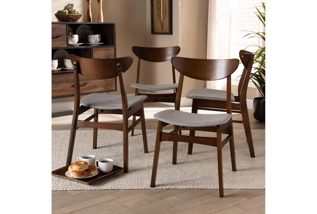 Springs Light Grey Fabric Uph & Walnut Brown Finished Wood Dining Chair Set Of 4