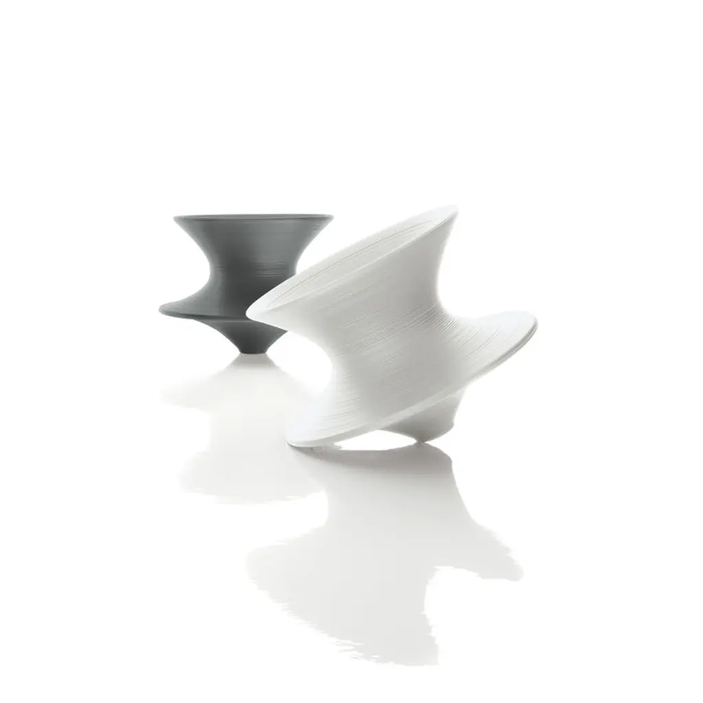 The Spun by Magis is a rotating chair designed by Thomas Heatherwick in 2010. This sculptural piece of design invites you to try out its usability – in the chair you can swing from side to side or even spin around. In addition to its fun and interesting appearance, the Spun is a comfortable and functional seat that is also well suited for outdoor use. Made of polyethylene, the Spun is available in several different matte shades.