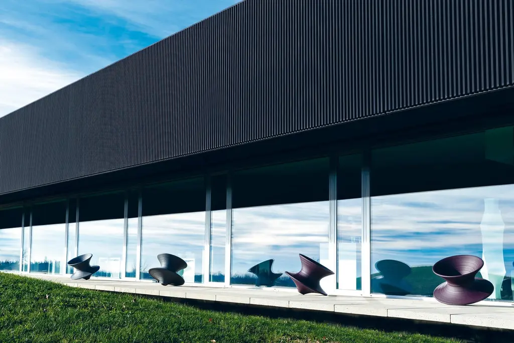 Not just a new seat, a new concept in seating and sitting: Spun. Its harmonious, dynamic and perfectly symmetric shape is reminiscent of a cotton reel, a top that spins on its axis or a vase thrown on a potter’s wheel. A captivating contemporary sculpture when it is still, Spun becomes a comfortable, fun seat when it moves, a seat on which we can experience new sensations, rediscover the pleasure of rock- ing, turn 360°, and play with the world around us. Born of Thomas Heatherwick’s creative flair and Magis research, this unconventional seat has already won one of the design world’s supreme accolades, the 2014 ADI Compasso d’Oro Award.Spun is in rotational-moulded polyethylene and is suitable for outdoor use.Compasso d’Oro 2014Available now in Dark Purple, Grey Anthracite and White
