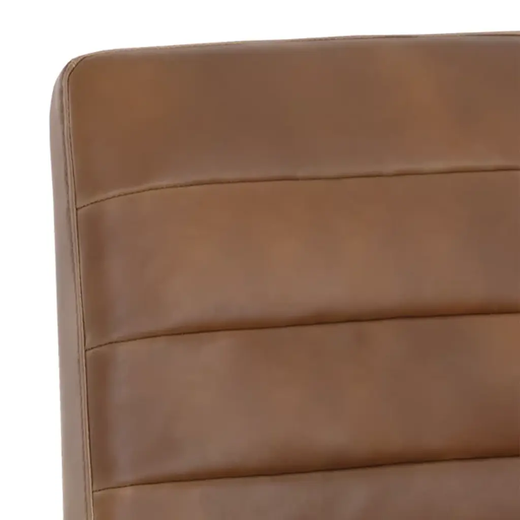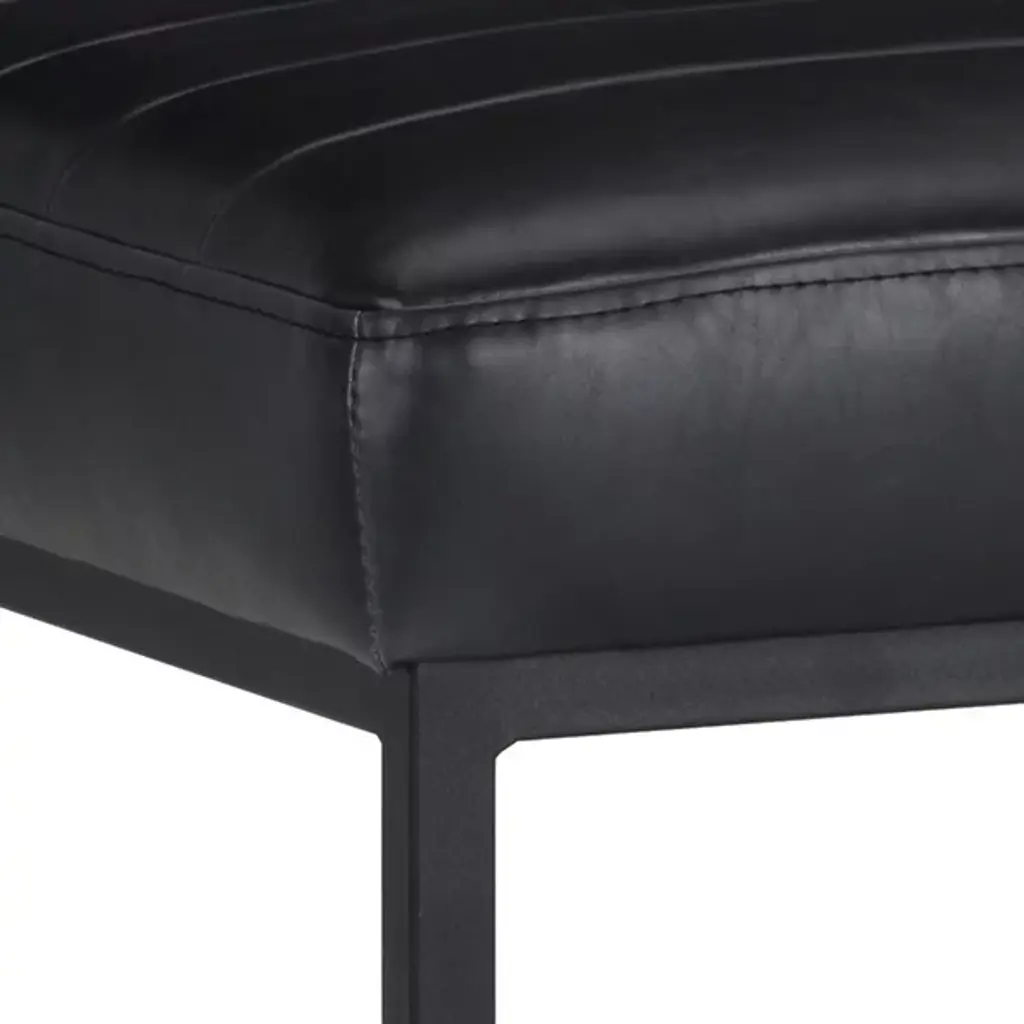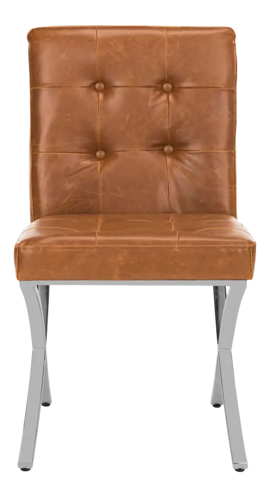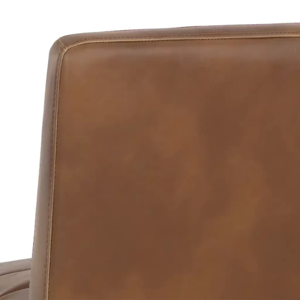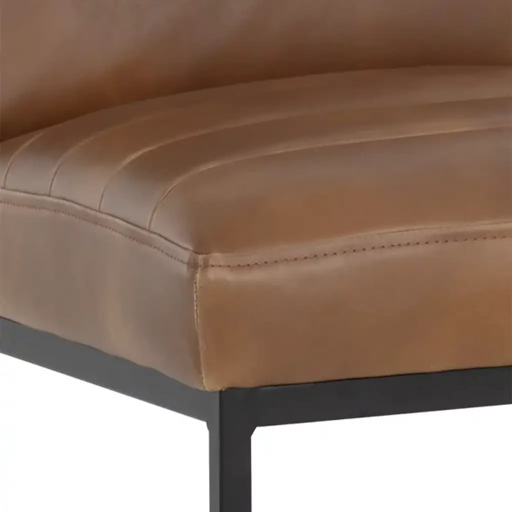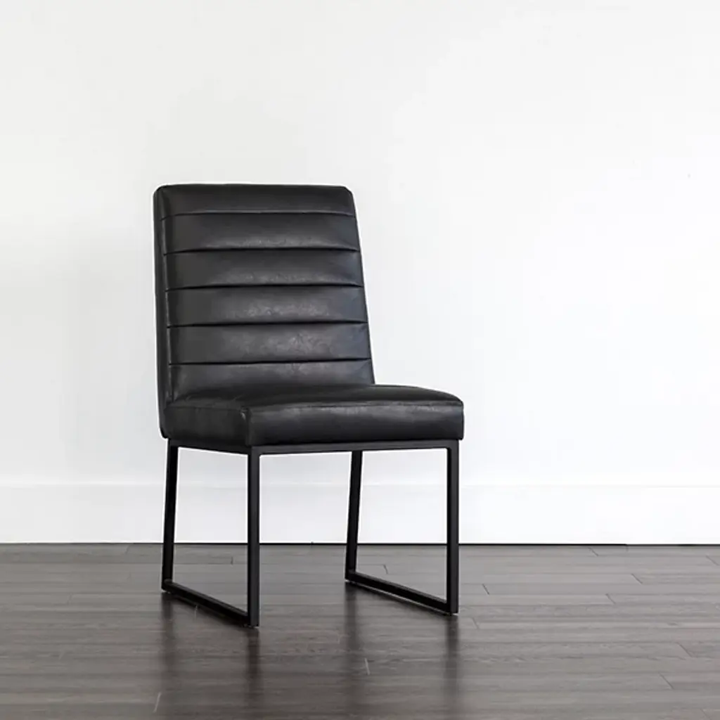 Make a stately retro enhancement to indoor gathering spaces with the commanding lines and robust design of the Spyros Dining Chair, Set of 2 from Sunpan. Solid and squarish, it ascends from two bracket-style iron bases, using a layer of metal to hold a wood frame in place, accompanied by upholstery and surfaced in segmented sheaths of faux leather. Each seat has a unique, expressive surface, contrasting well with the clean-surfaced metal structure below and juxtaposing its airy openness with the solid upper surface.