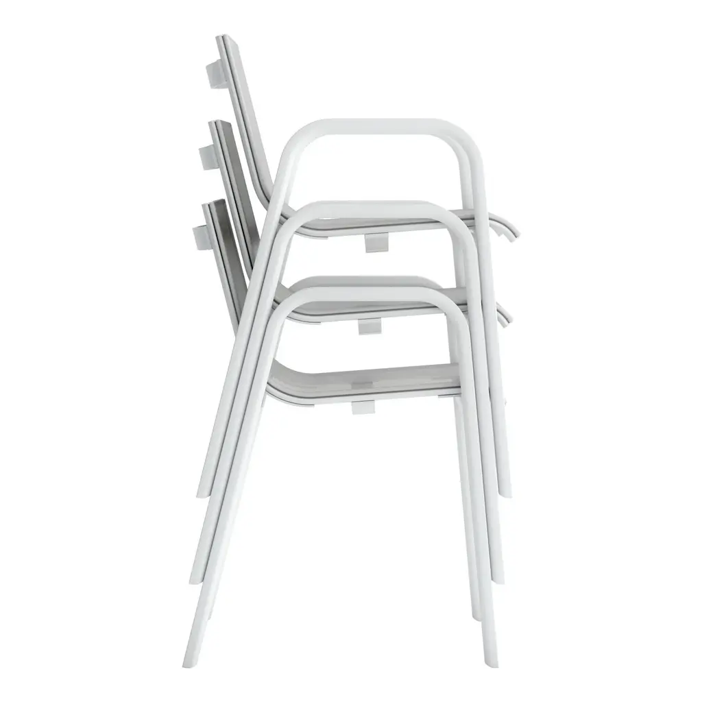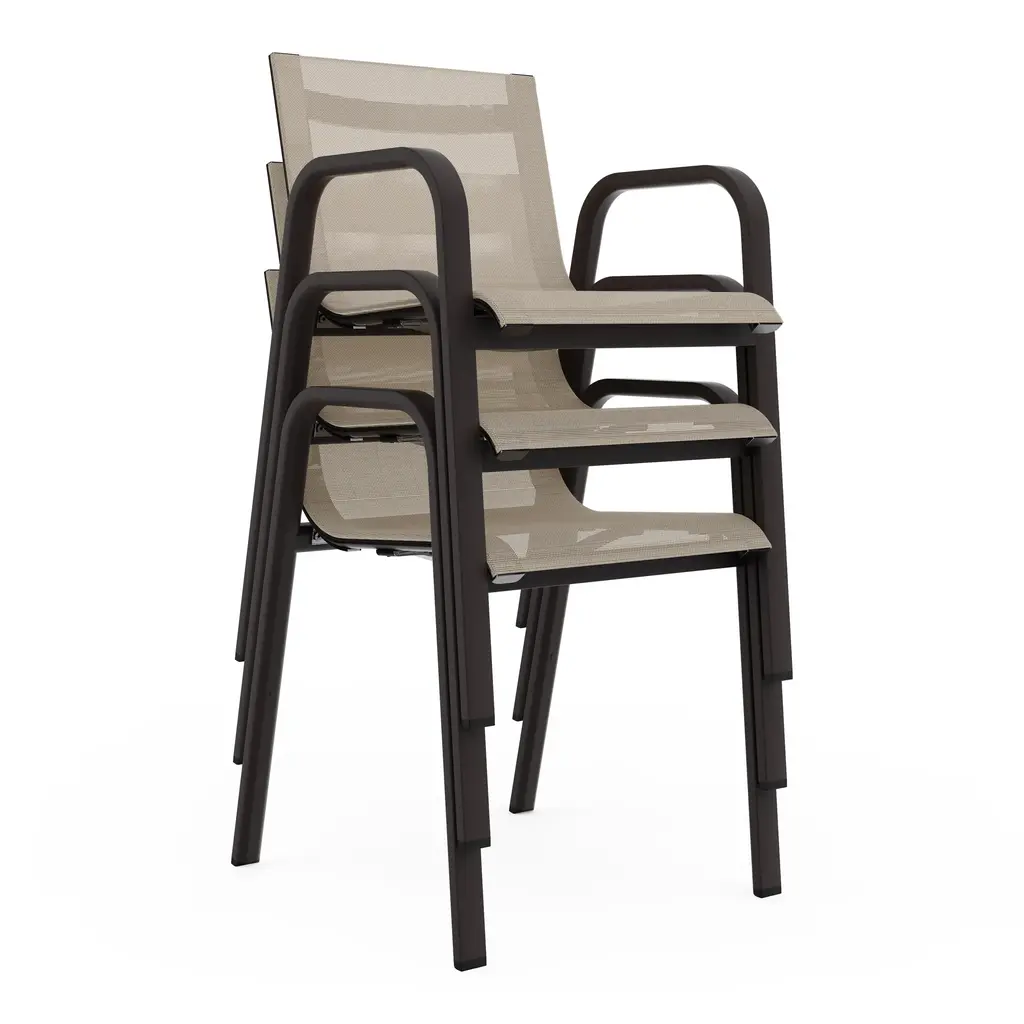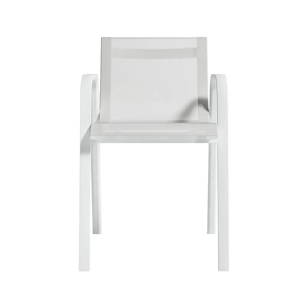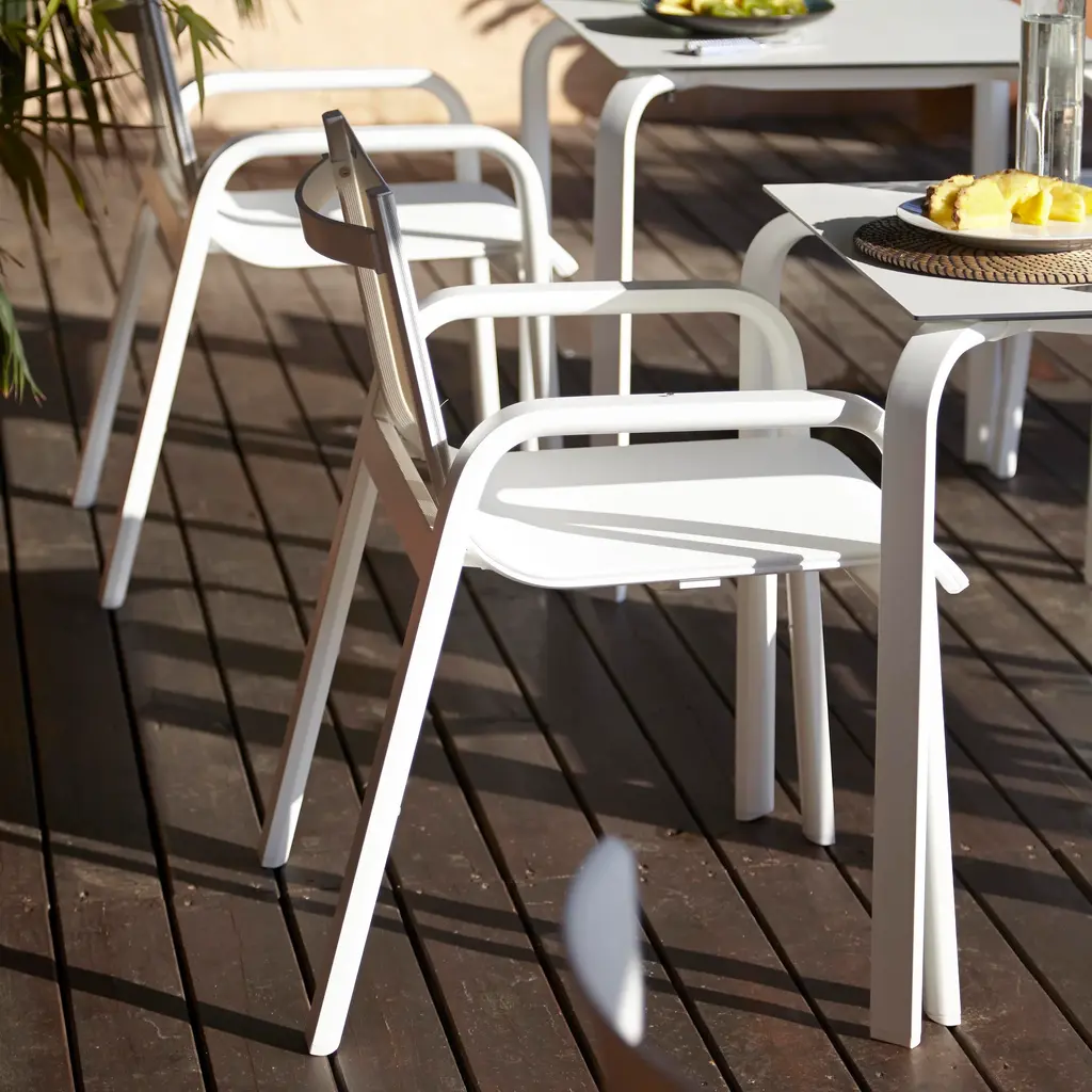 Elegant, fresh, quality design. STACK is GANDIABLASCO’s most lightweight and free-and-easy outdoor furniture collection, inspired by aesthetics from the world of sailing, with design elements reminiscent of the 1960s and 70s. The STACK dining armchair is a designer chair with a light structure made from powder coated aluminum, available in different colors, from the most sober to the most vivid, the fetish material of GANDIABLASCO. The seats and backs are made from a translucent Batyline® fabric that adheres to the structure and which you may customise in different colors and finishes. Especially designed by Borja Garcia for Contract projects, the collection is stackable. The sober and elegant design of the STACK outdoor chair means that it in itself can be used to complement different types of outdoor furniture, or used in conjunction with pieces from the STACK collection. Features