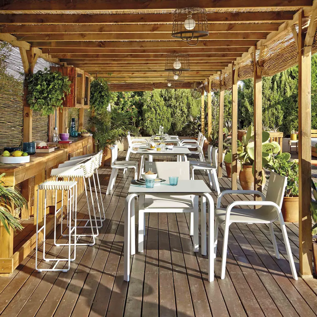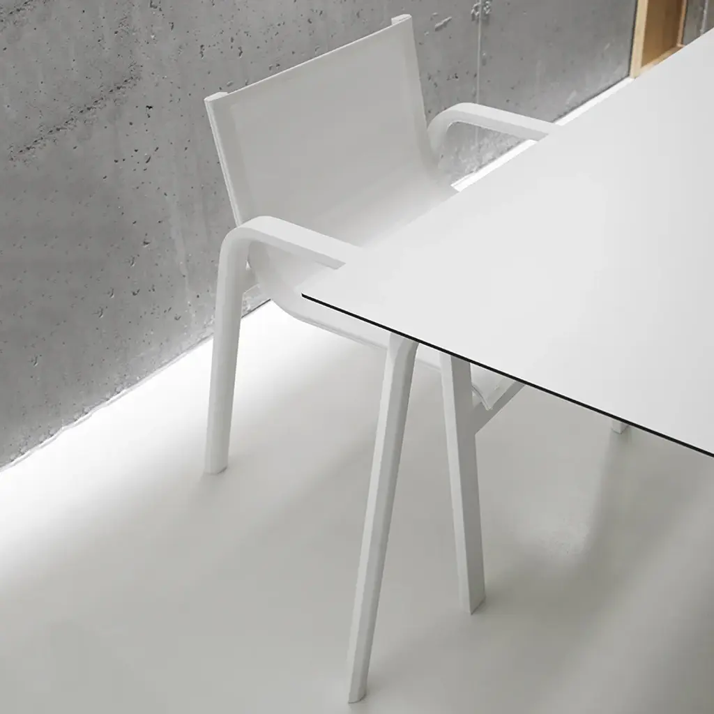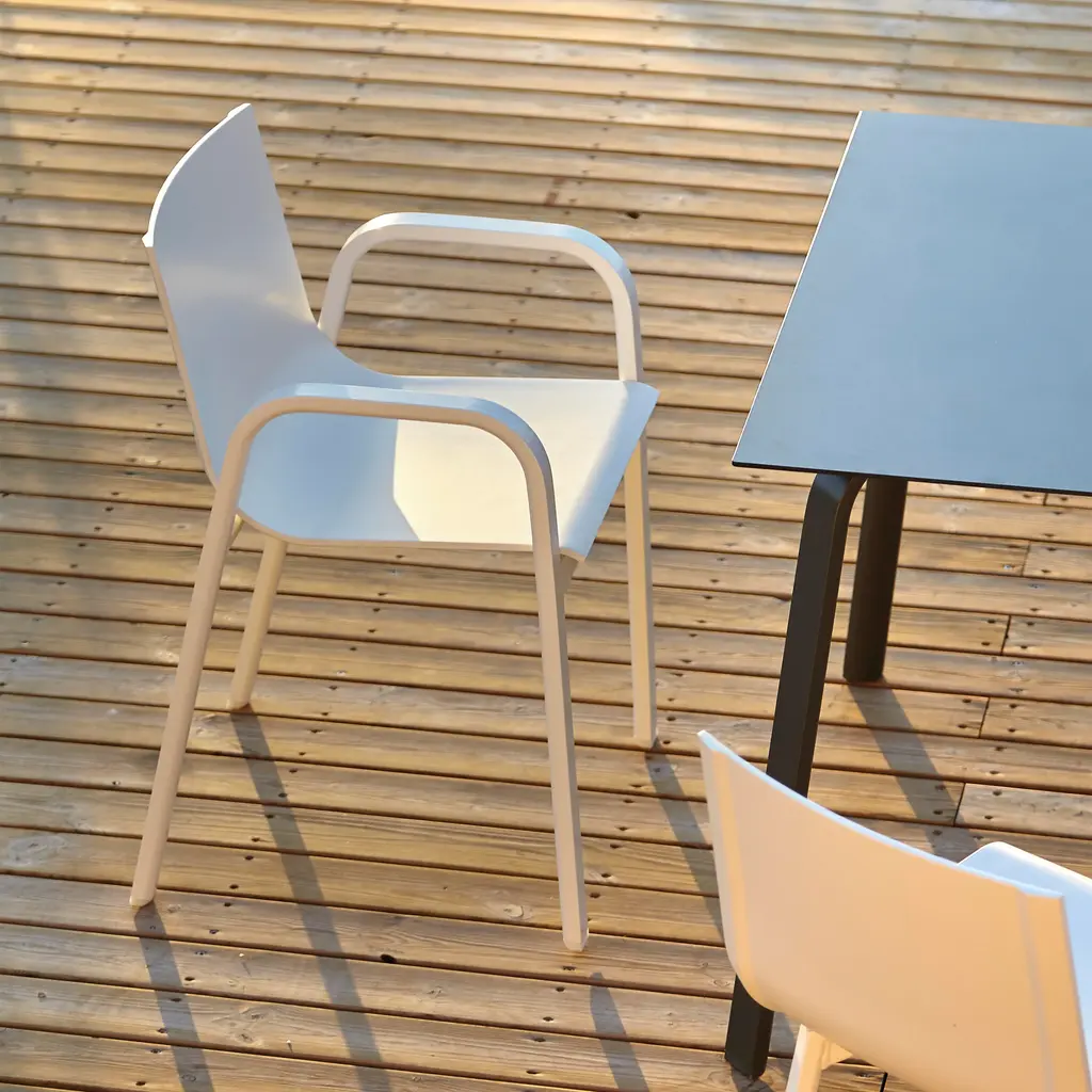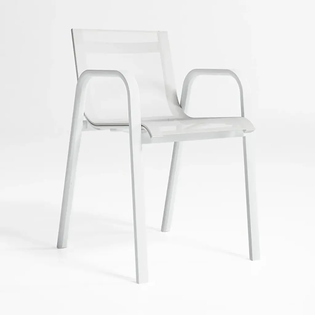 Elegant, fresh, quality design. STACK is GANDIABLASCO’s most lightweight and free-and-easy outdoor furniture collection, inspired by aesthetics from the world of sailing, with design elements reminiscent of the 1960s and 70s. The STACK dining armchair is a designer chair with a light structure made from powder coated aluminum, available in different colors, from the most sober to the most vivid, the fetish material of GANDIABLASCO. The seats and backs are made from a translucent Batyline® fabric that adheres to the structure and which you may customise in different colors and finishes. Especially designed by Borja Garcia for Contract projects, the collection is stackable. The sober and elegant design of the STACK outdoor chair means that it in itself can be used to complement different types of outdoor furniture, or used in conjunction with pieces from the STACK collection. Features