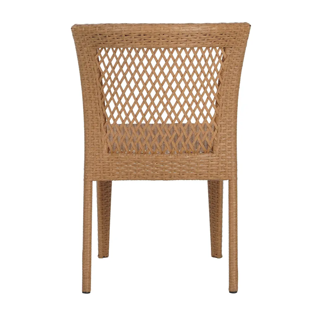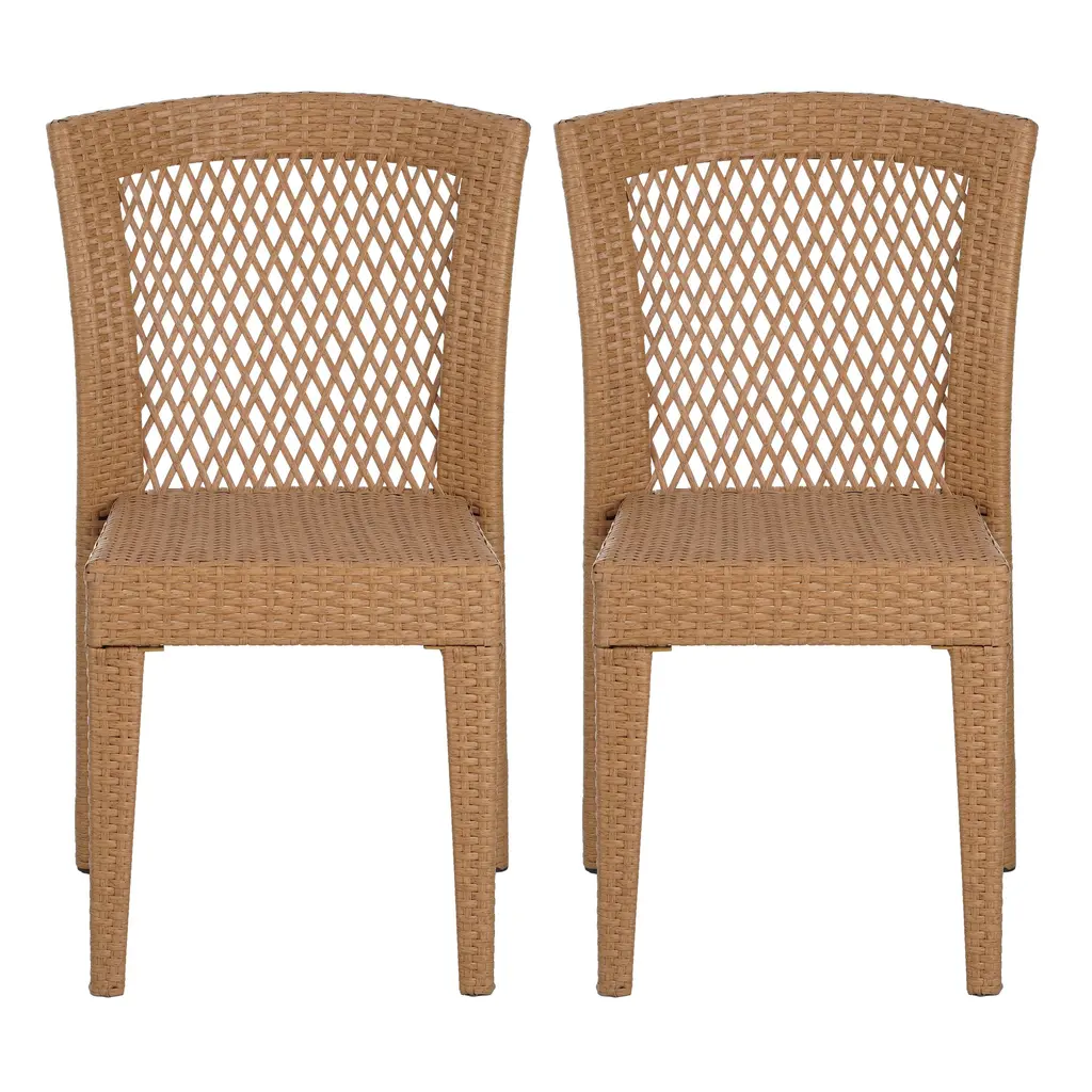Stacking Side Chair, Weather-Resistant Polyethylene Wicker Materials, Set Of 2, 20"w X 24"d X 33"h - Light Brown