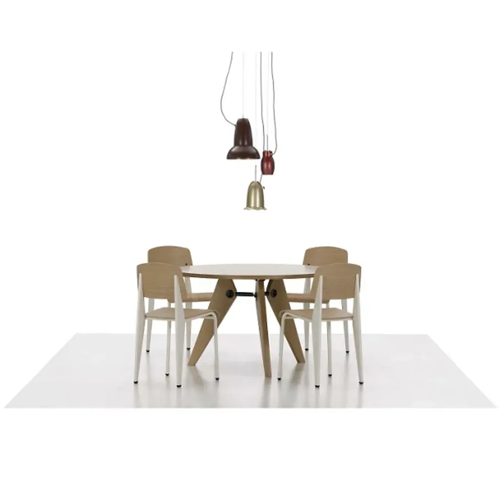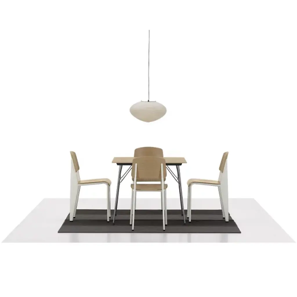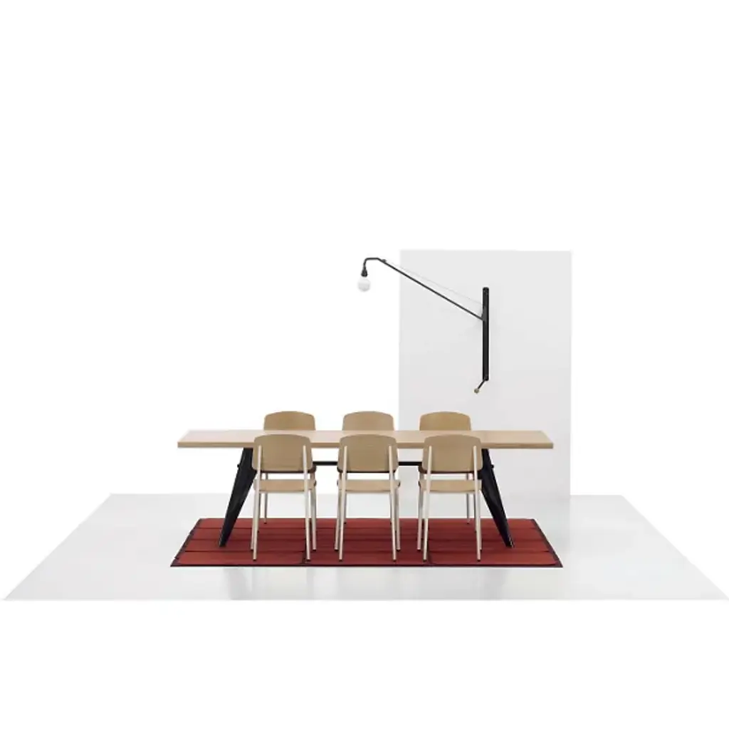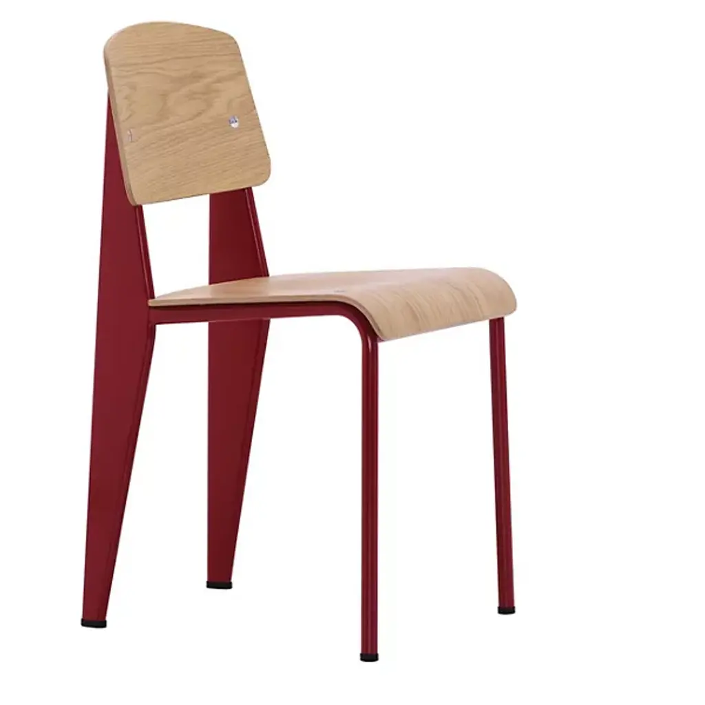 The Vitra Standard Dining Chair is Jean Prouve 101. While certainly a distinctive aesthetic, the lengthy wedge-shaped sheet steel back legs were designed to bear the full weight of a sitter's body. Meanwhile, tubular steel is enough to support the front of the chair. The modern industrial look--and comfort--of this chair is completed by a curved oak wood seat and back.