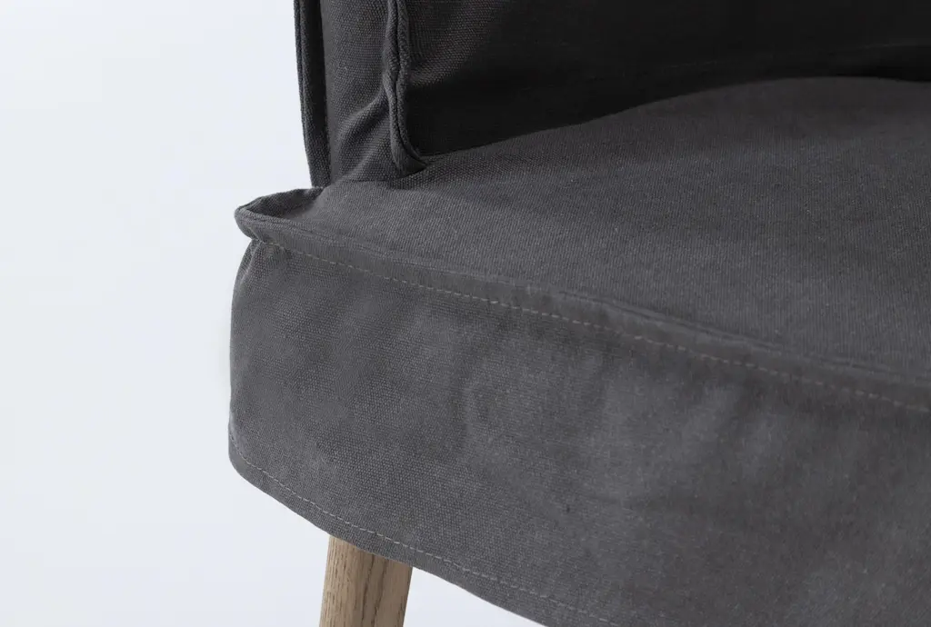 Experience living room-level comfort and warm sophistication with our Stanton dining chair. Designed with a hint of Scandinavian inspiration, this slipcovered-style seat perches on solid wood legs that are airy and sturdy.